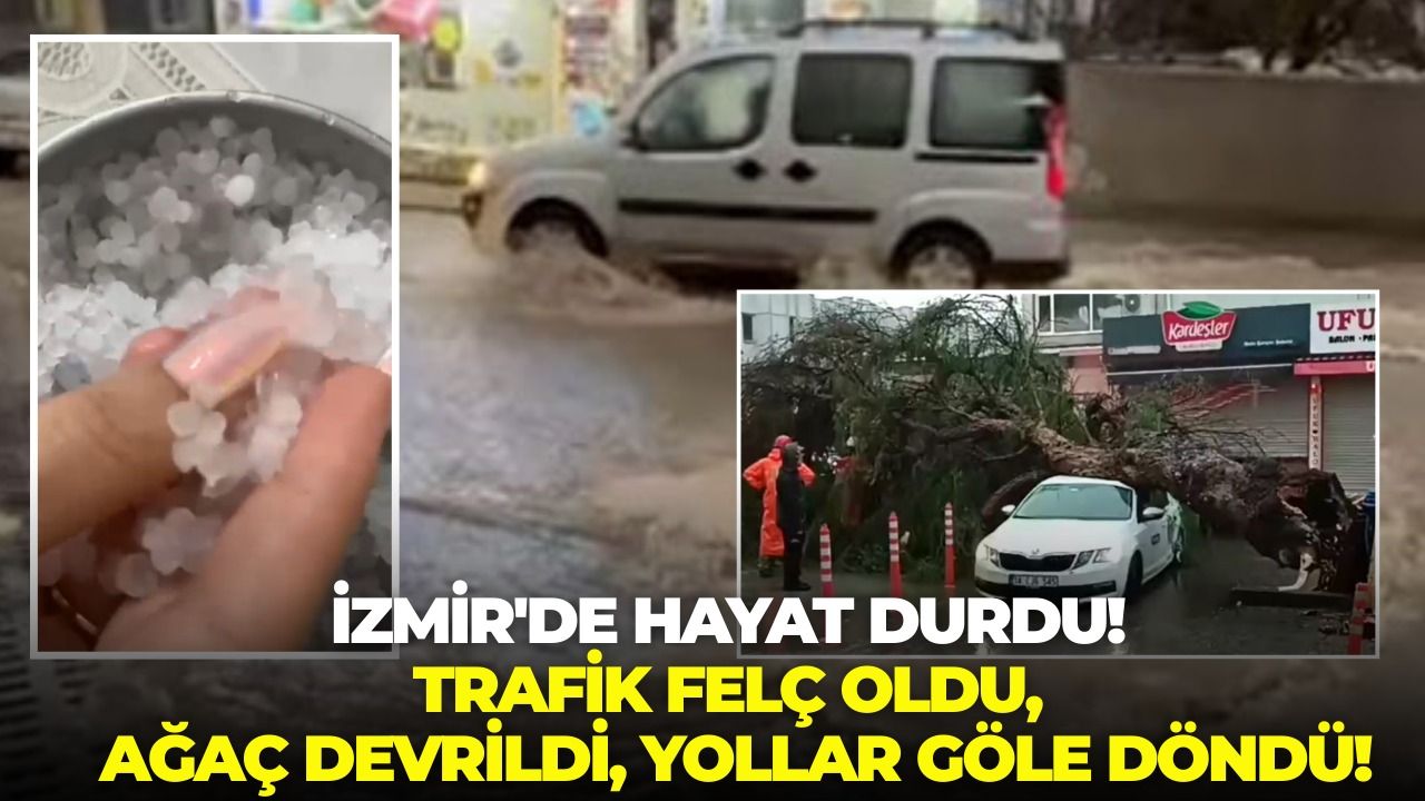 İzmir'de akşam saatlerinde aniden bastıran ve kısa sürede şiddetini artıran fırtınalı sağanak yağışın etkisiyle zor bir geceye uyandı. Kent genelinde etkisini hissettiren olumsuz hava koşulları, özellikle mesai bitimine denk gelince şehir yaşamı adeta durma noktasına geldi. Şiddetli fırtınayla birleşen yoğun yağış, yollarda su birikintilerine neden olurken, devrilen ağaçlar ve tıkanan rögarlar ulaşımı imkansız hale getirdi. İzmirliler, doğanın bu sert yüzü karşısında evlerine ulaşmak için büyük bir mücadele verdi.