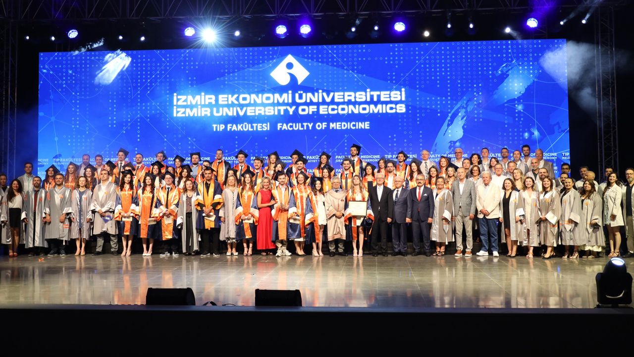 Son Mühür/ Begüm Mol - İzmir Ekonomi Üniversitesi (İEÜ) Tıp Fakültesi’nde eğitimlerini tamamlayan 44 öğrenci, düzenlenen 2024-2025 Akademik Yılı Mezuniyet Töreni’nde diplomalarına kavuştu. Amfitiyatroda gerçekleşen törene üniversite yöneticileri, akademisyenler, İzmir Ticaret Odası temsilcileri ve çok sayıda davetli katıldı.