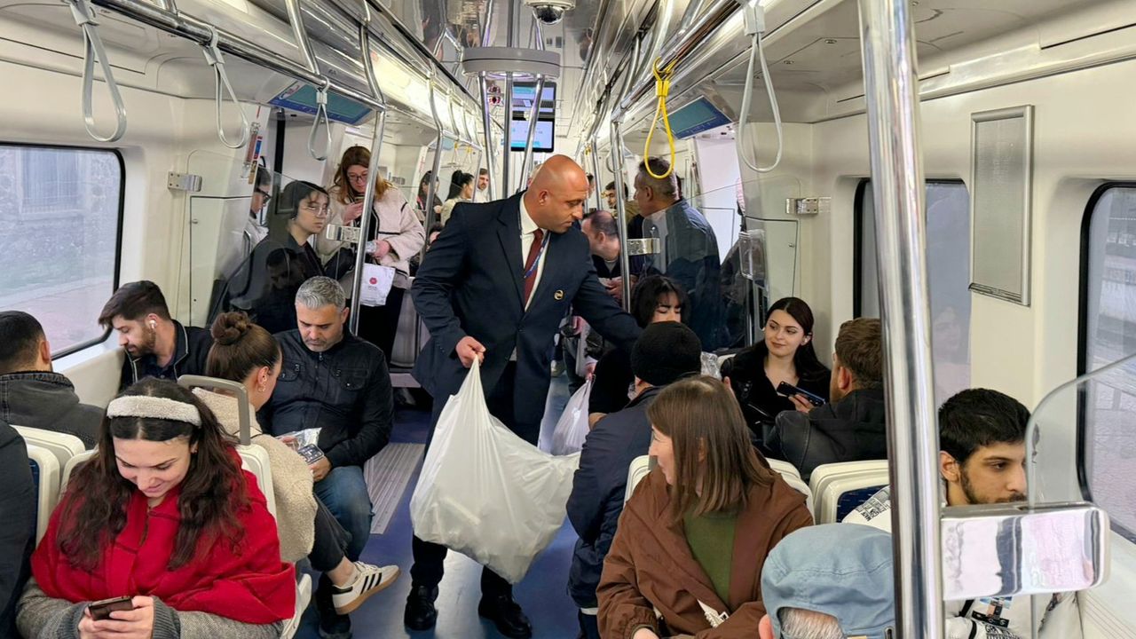 Günün yoğun saatlerinde seyahat eden vatandaşlar, sürpriz ikramla iftarlarını tren yolculuğu sırasında açma imkanı buldu.