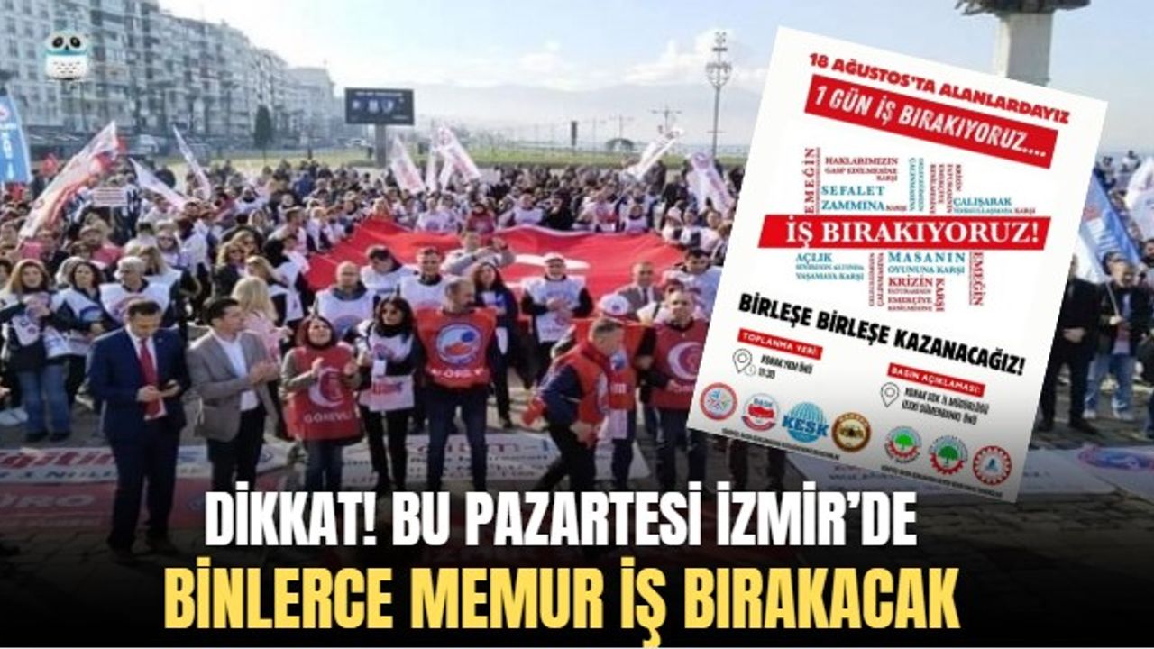 İzmir’de de acil hizmetler hariç sağlık, belediye, SGK, nüfus, orman gibi geniş bir yelpazede kamu hizmetlerinde bir günlük iş bırakma eylemi nedeniyle hizmet verilemeyecek.