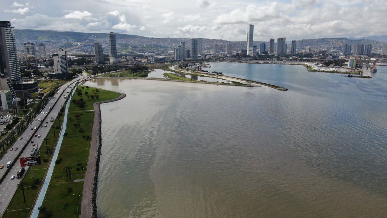 Bayraklı sahil şeridi üzerinde gerçekleştirilen insansız hava aracı çekimleri, yaşanan değişimini boyutlarını gözler önüne serdi. Havadan kaydedilen görüntülerde, karadan gelen bulanık su kütlesinin körfezin mavi sularıyla kesiştiği ve geniş bir alana yayıldığı açıkça seçildi.