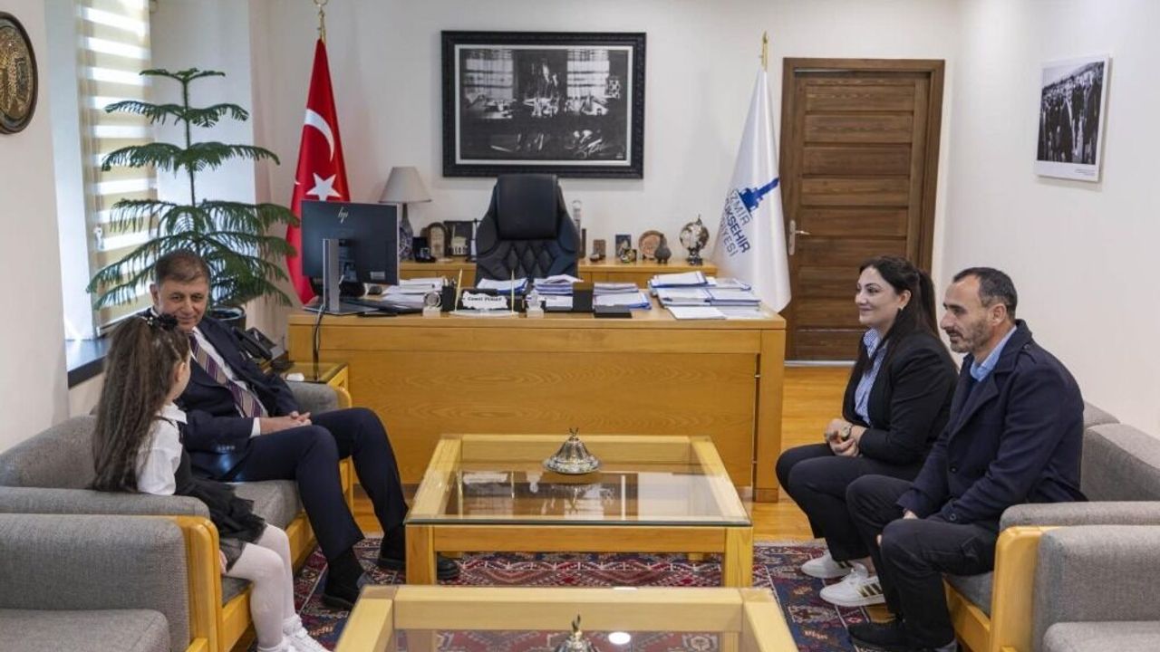 Buluşmanın sonunda Dr. Cemil Tugay, milli değerlerimize olan bağlılığıyla örnek teşkil eden Meryem Esila’yı çeşitli armağanlarla ödüllendirdi. Şen’e özel hazırlanan kitap seti, eğitici yap-boz ve kulaklık verilirken, en anlamlı hediye ise üzerinde şanlı Türk Bayrağı’nın dalgalandığı mini sancak oldu. Başkan Tugay, sadece hediyelerle kalmayıp aileyi kapıya kadar uğurlayarak nezaketini gösterdi. Okulların fiziki ihtiyaçlarıyla yakından ilgilendiklerini hatırlatan Tugay, ailenin herhangi bir talebi olması durumunda kapılarının her zaman açık olduğunu belirtti.