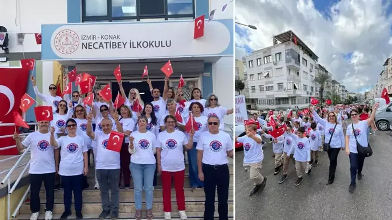İzmir’in Konak ilçesinde düzenlenen yürüyüş, Cumhuriyet’in değerlerini çocuklara aktarmak amacıyla organize edildi.