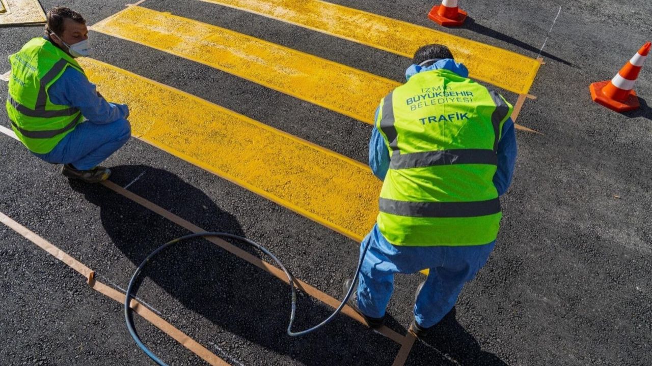 İzmir Büyükşehir Belediyesi, kentsel hareketliliğin kalbinde hem araç akışını optimize etmek hem de yaya güvenliğini en üst seviyeye çıkarmak amacıyla yenilikçi uygulamalarını sürdürüyor. Bu kapsamda, kentin sembolik noktalarından biri olan Vasıf Çınar Bulvarı ile Şevket Özçelik Sokağı’nın kesiştiği kavşak noktasında kapsamlı bir trafik düzenlemesi gerçekleştirildi. Bölgedeki mevcut yaya geçidi, modern şehircilik standartlarına uygun olarak yükseltilmiş bir yapıya kavuşturuldu. İzmir Büyükşehir Belediyesi ekiplerinin titiz çalışmaları sonucunda tamamlanan geçit, yüksek fark edilebilirlik sağlayan termoplastik boyalarla işaretlendi ve gerekli trafik uyarı tabelalarıyla donatılarak yaya kullanımına hazır hale getirildi.