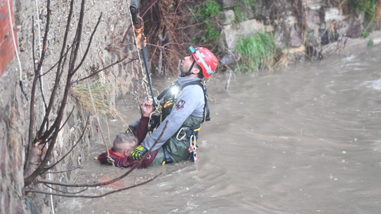 Yağışın en trajik olaylarından biri Yeşildere bölgesinde yaşandı. Dere yatağında uyuduğu esnada aniden yükselen sel sularına kapılan 50-55 yaşlarındaki bir vatandaş, yaklaşık 20 metre boyunca sürüklendi. Çevredekilerin acil ihbarı üzerine bölgeye intikal eden İzmir Büyükşehir Belediyesi İtfaiye Dairesi Başkanlığı ekipleri, su seviyesinin 2 metreye ulaştığı bölgede zamanla yarıştı. Vinç yardımıyla azgın suların içine inen itfaiye erleri, mahsur kalan vatandaşı güvenli bir şekilde sedyeye sabitledi. Yaklaşık 10 metre yükseklikteki duvardan yukarı çekilen kazazede, ilk müdahalenin ardından hastaneye ulaştırıldı.