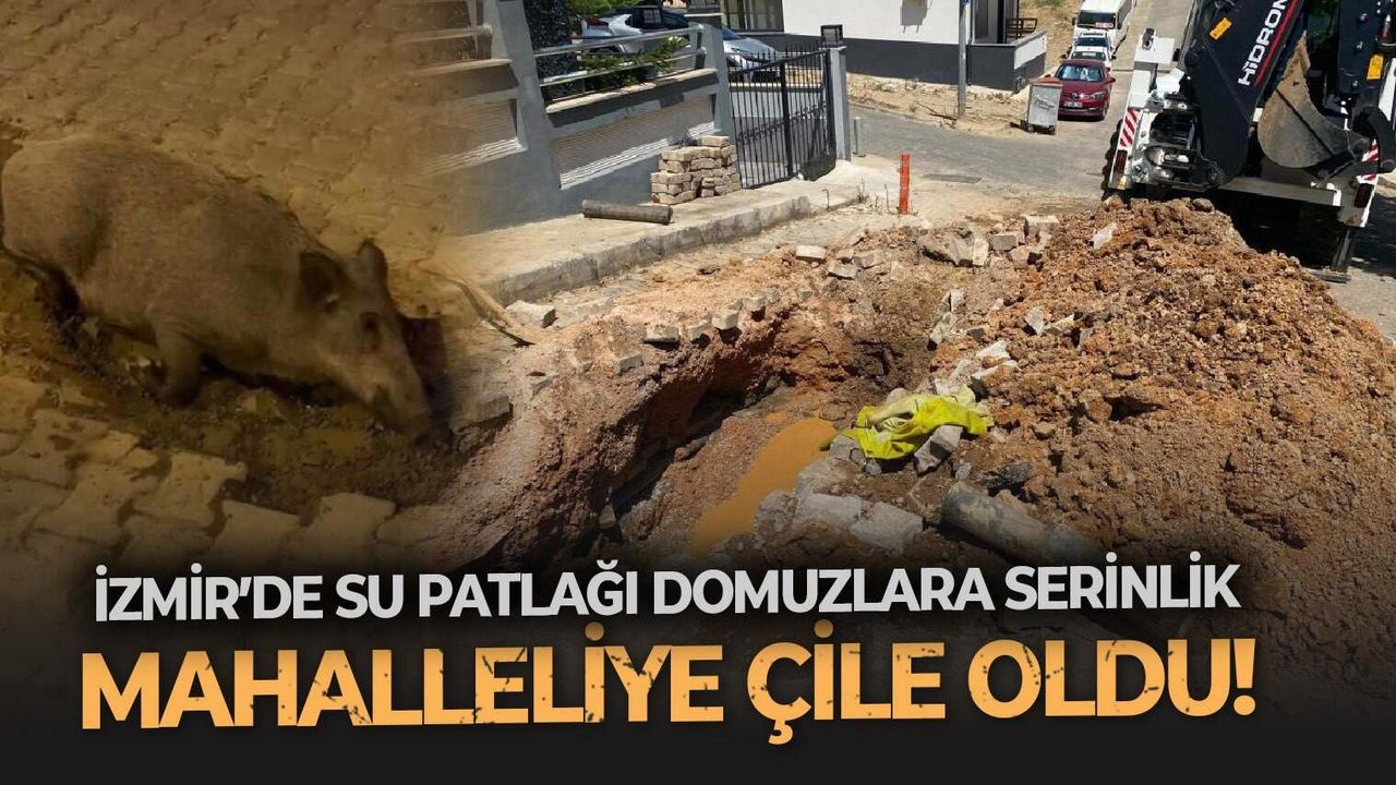 Sosyal medyada paylaşılan görüntülerde, domuzların serinlemek için sokaktaki su birikintisinde vakit geçirdiği görüldü. Görüntüler kamuoyunda tepki yaratınca, İzmir Su ve Kanalizasyon İdaresi (İZSU) ekipleri gecikmeli de olsa arızaya müdahale ederek onarım çalışmasını tamamladı.