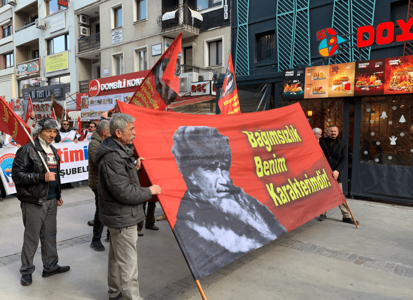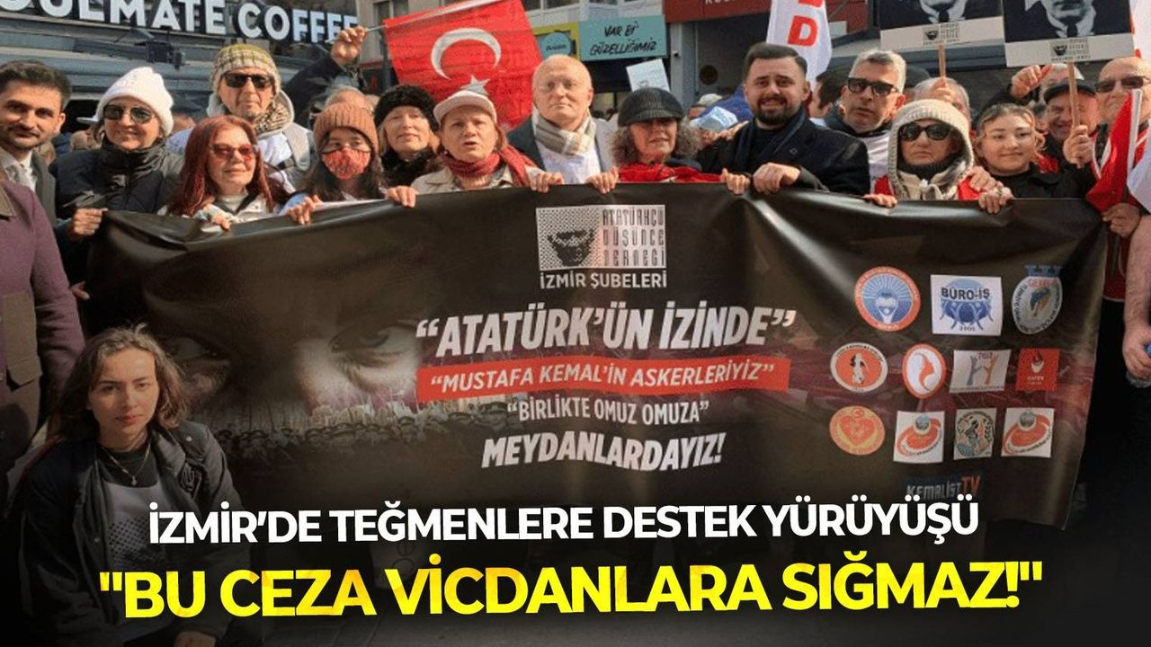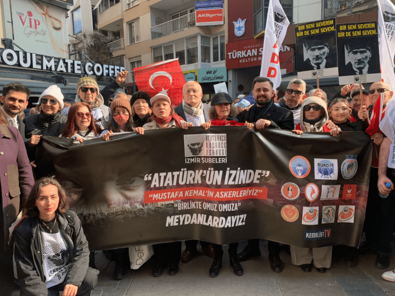 Son Mühür/ Gamze Eskiköy- Geçtiğimiz günlerde yemin töreni sırasında kılıç çatarak “Mustafa Kemal’in askerleriyiz” sloganı attıkları gerekçesiyle ordudan ihraç edilen 5 teğmene destek büyüyor. Atatürkçü Düşünce Derneği (ADD), Zafer Partisi, Halkın Kurtuluş Partisi ve çeşitli sivil toplum kuruluşları, İzmir Alsancak’ta bir araya gelerek yürüyüş düzenledi.