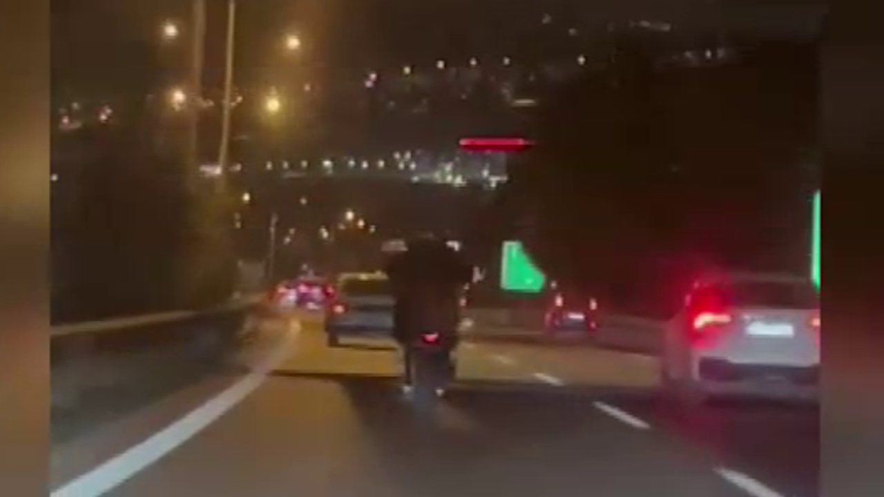 İzmir’de trafikte hem kendi hayatını hem de diğer sürücüleri riske atan bir motosikletli, çevre yolunda uzun süre tek teker üzerinde ilerledi. Ön kaldırarak metrelerce yol alan sürücünün tehlikeli hareketleri, çevredeki vatandaşlar tarafından cep telefonu kamerasıyla kaydedildi.