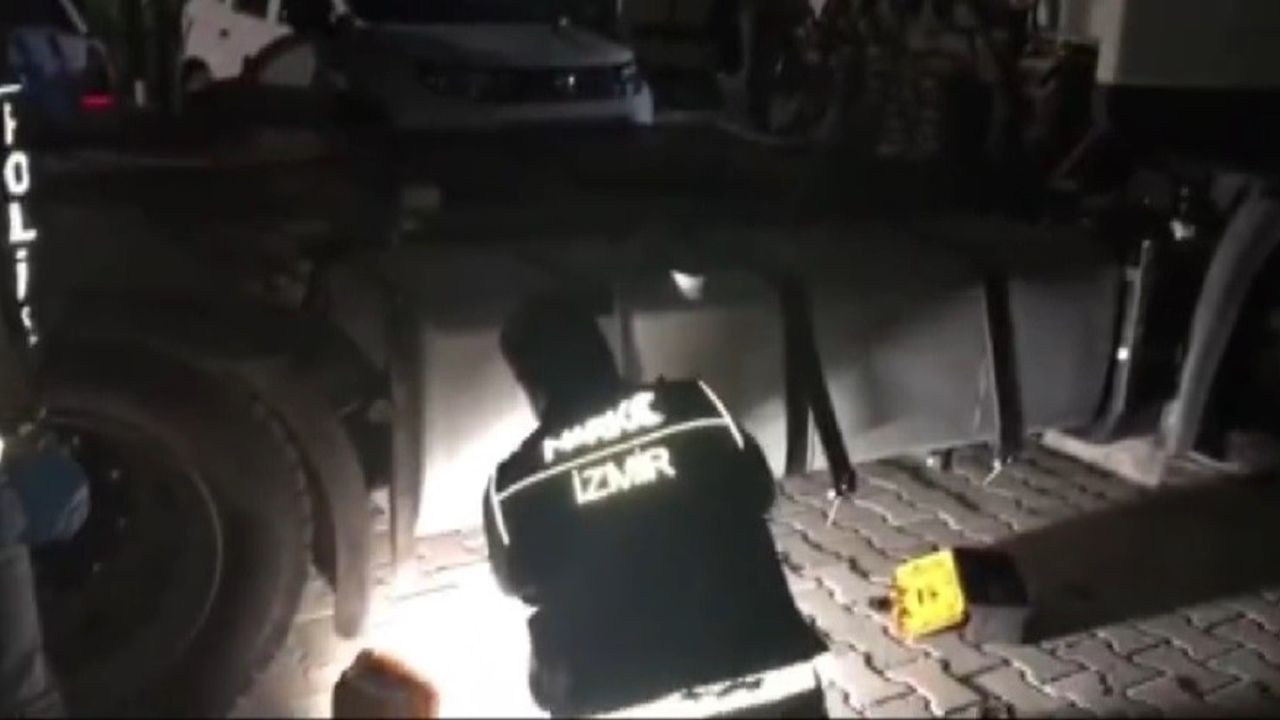 İzmir İl Emniyet Müdürlüğü Narkotik Suçlarla Mücadele Şube Müdürlüğü ekipleri, bir tır içerisinde yüklü miktarda uyuşturucu madde bulunduğu bilgisi üzerine harekete geçti. Tırı durduran ekipler, narkotik köpeğinin akaryakıt deposuna tepki göstermesi üzerine burayı kontrol etti. Yapılan kontrolde akaryakıt deposu içerisinde 57 kilo 900 gram skunk esrar maddesi ele geçirildi.