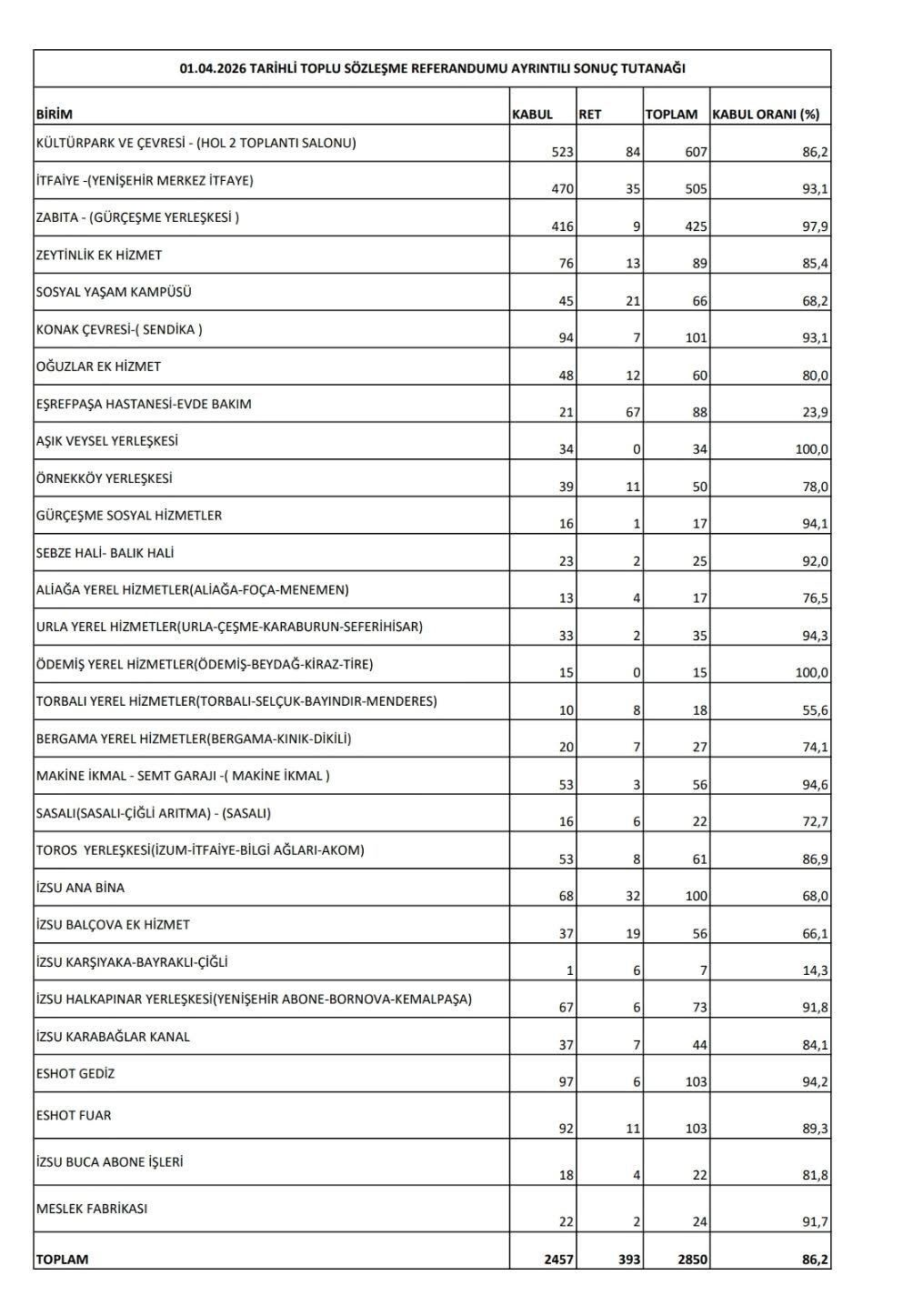 Binlerce memuru ilgilendiren oylamaya 2 bin 850 kişi katıldı. Yapılan oylama sonucunda 2 bin 457 kabul, 393 ret oyu çıkarken, teklif büyük çoğunlukla kabul edildi. Bu sonuçla birlikte, belediye bünyesindeki memurlar için yeni mali hakların yürürlüğe girmesi bekleniyor.