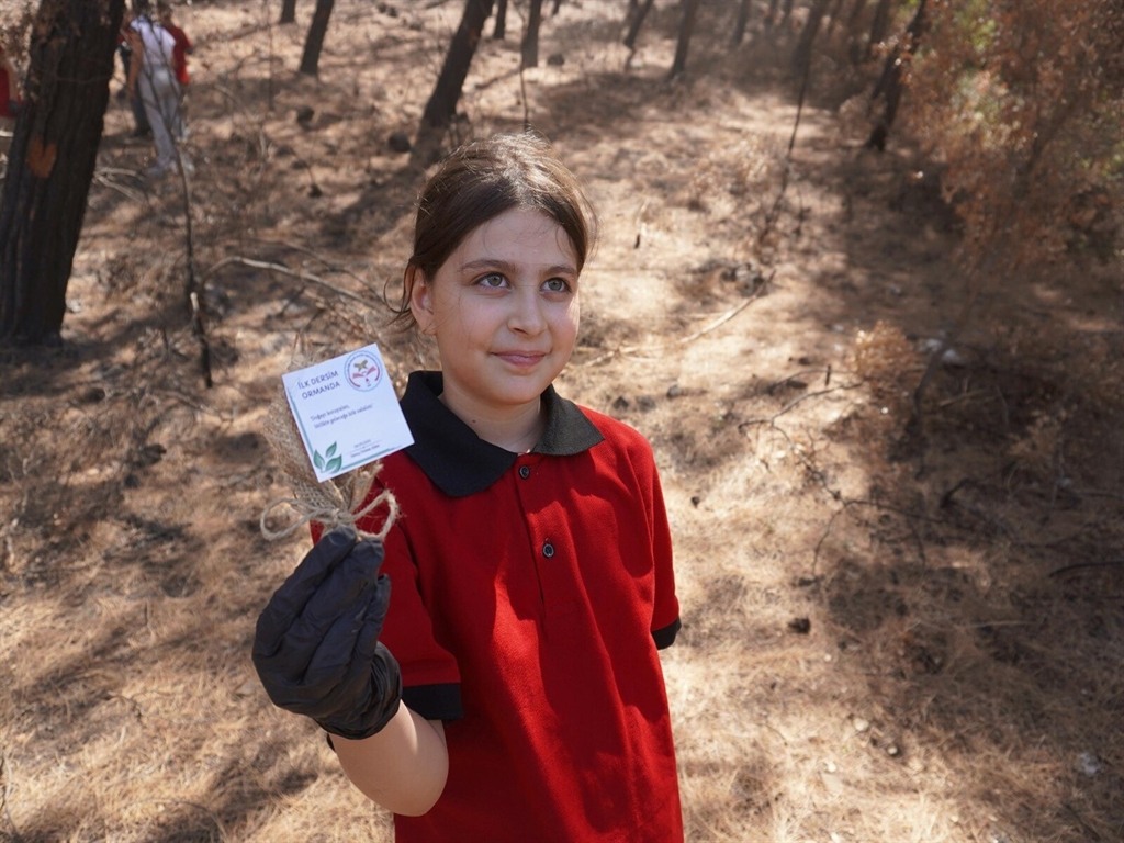 Dersin ikinci bölümünde öğrenciler çevre temizliği yaptı ve yanan alanlara tohum dikti. Orman Koruma Muhafaza Memurları eşliğinde her öğrenciye birer Akdeniz çamı tohumu verildi ve öğrenciler, tohumları kendi elleriyle toprakla buluşturdu.