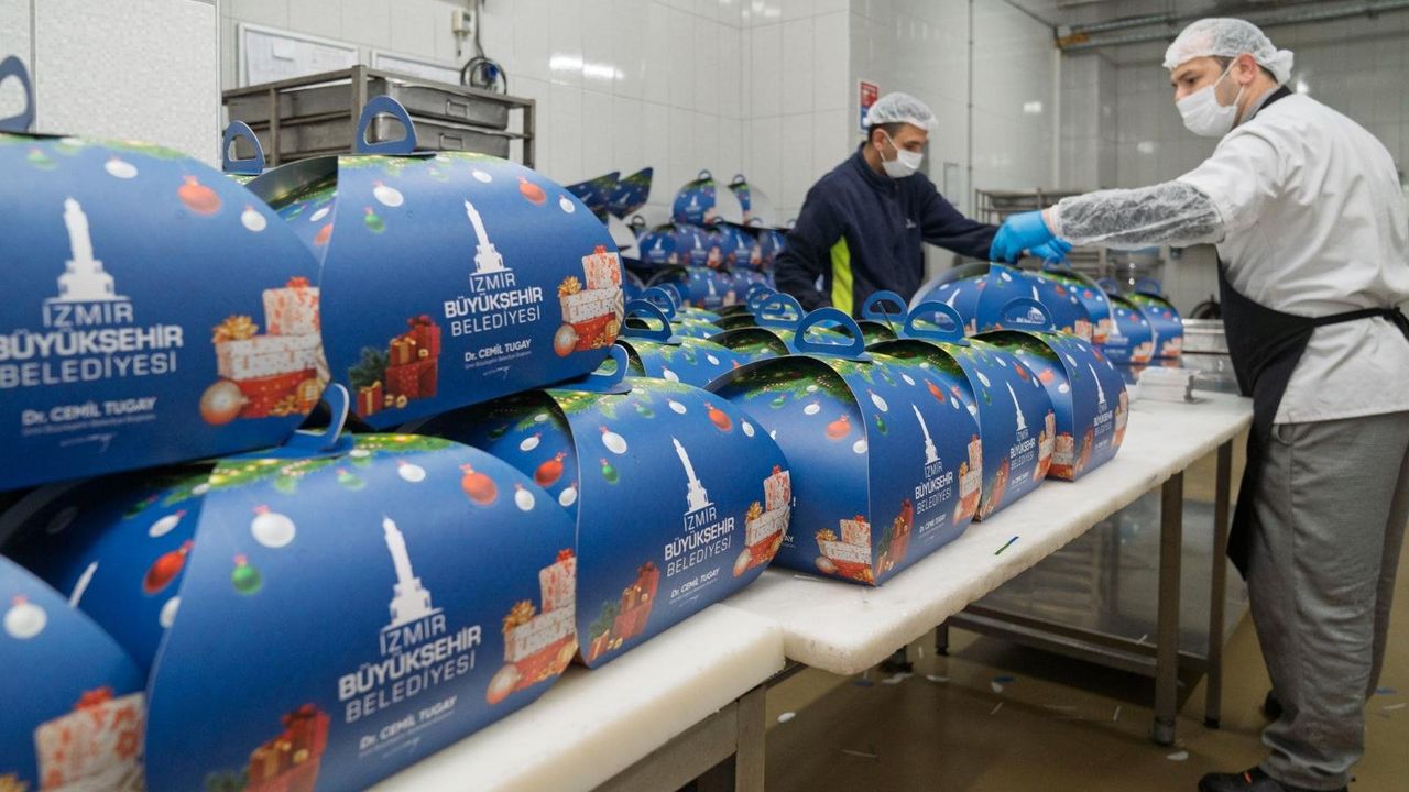 İzmir Büyükşehir Belediyesi bünyesinde yürütülen çalışma kapsamında, Sosyal Yardım Takip Sistemi’ne kayıtlı haneler için İzmir Sosyal Yaşam Kampüsü içerisinde hizmet veren aşevinde 3 bin 20 adet yeni yıl pastası üretildi. Pastalar, belediye ekipleri tarafından ihtiyaç sahibi ailelere ulaştırıldı.