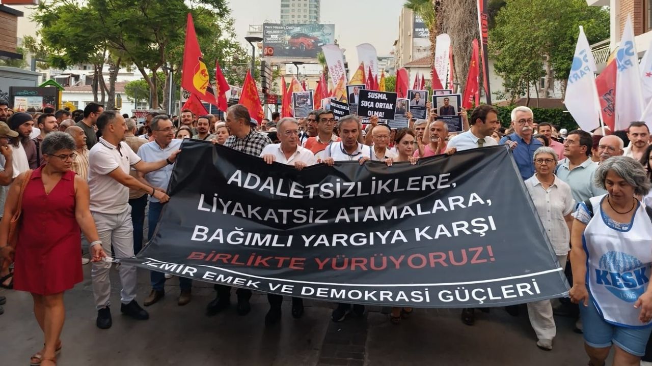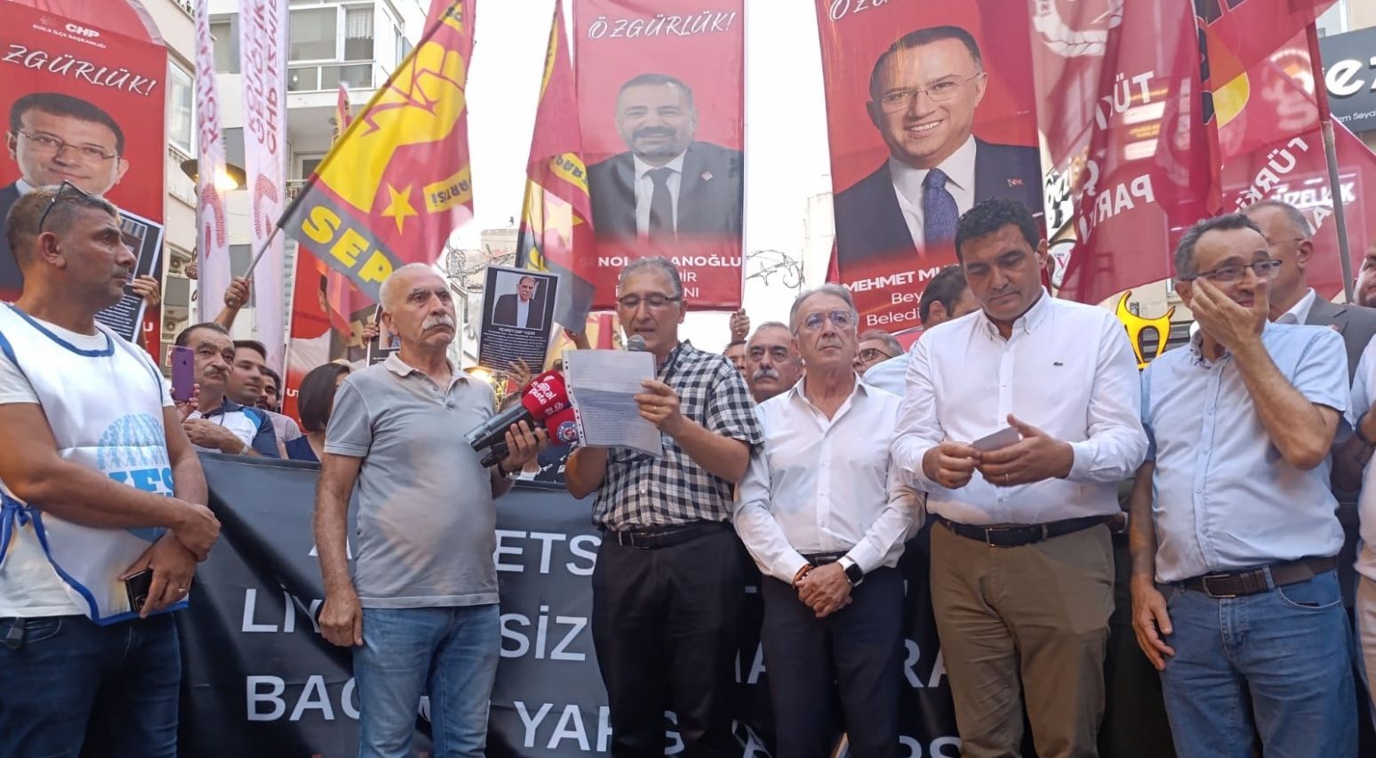 Cumhuriyet Halk Partisi (CHP) İzmir İl Örgütü ve İzmir Emek ve Demokrasi Güçleri, İzmir Büyükşehir Belediyesi'ne yönelik, “kooperatif” soruşturması kapsamında tutuklanan CHP İzmir İl Başkanı Şenol Aslanoğlu ve daha önce iki kez kanser atlatan tutuklu Beylikdüzü Belediye Başkanı Mehmet Murat Çalık için alana çıktı. Alsancak Kıbrıs Şehitleri Caddesi’ndeki ÖSYM binası önünde bir araya gelen partililer ve İzmir Emek ve Demokrasi Güçleri bileşenleri, Türkan Saylan Kültür Merkezi önüne yürüyerek basın açıklaması yaptı.
