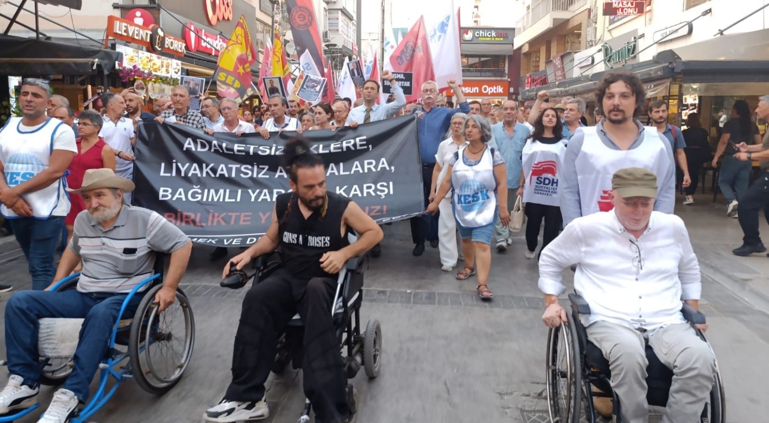DİSK Ege Bölge Temsilcisi Memiş Sarı ise faşizme karşı ortak mücadele çağrısı yaptığı açıklamasında, “Demokrasi işçinin ekmeğidir dediğimiz yolda bir de görüyoruz ki herkes kendi mücadele hattını ayrı örüyor, oysa faşizm hepimize saldırıyor. Buradan Metin Göktepe’nin gazetesi Evrensel’e yapılan saldırıyı kınıyor ve özgür baskın susturulamaz diyorum. Yaşam hakkı evrensel bir hak olduğu gibi mahpus hakları da evrenseldir. Kendi yandaşlarına geldiğinde bir kararnameyle serbest bırakılır ama içeride yatan sosyalistler, devrimciler ve sosyal demokratlar. Onlara buradan selam olsun. O yüzden tüm hasta tutsaklar için mücadeleyi hep bir arada örmek zorundayız. Doğuda kayyım atanırken, ‘İstanbul ve İzmir uzak değil’ demiştik ama kimse sesimizi duymamıştı. Bugün bunlar yaşanıyor. Ama demokratlar yan yana gelirse faşizmi yerle bir ederiz” dedi.