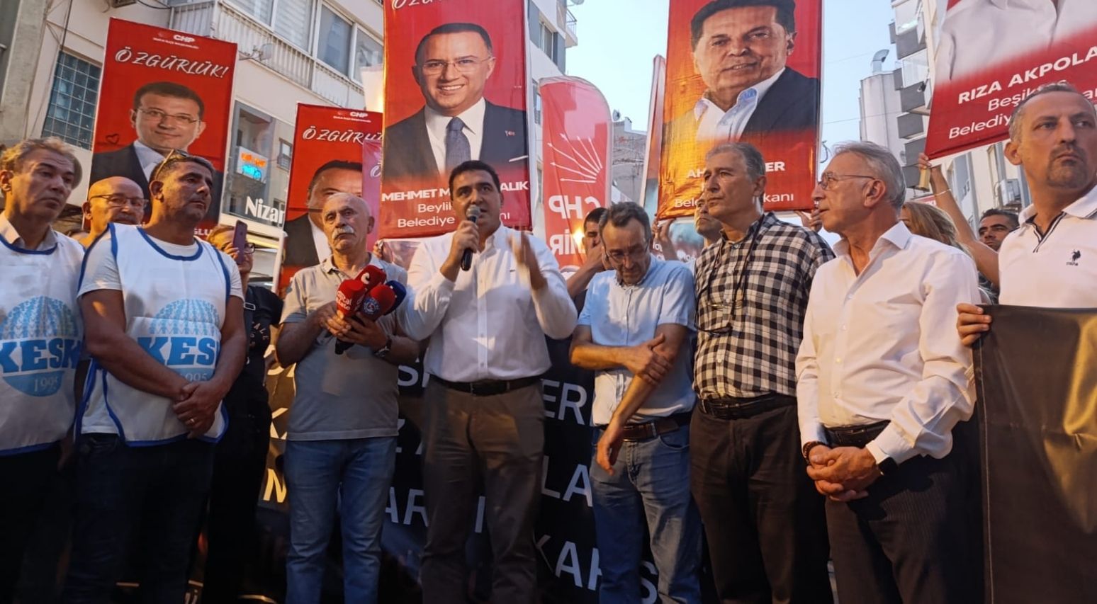Son Mühür/Sercan Engerek- İzmir'de önceki dönem belediye yöneticilerine yönelik açılan soruşturmada CHP İzmir İl Başkanı Şenol Aslanoğlu'nun tutuklanmasını ve Beylikdüzü Belediye Başkanı Murat Çalık'ın hastalığına rağmen tahliye edilmemesini eleştiren CHP Genel Başkan Yardımcısı Ulaş Karasu, “AKP iktidarı vatandaşın oyuyla alamadığı belediyelerde kayyım, yargı sopası veya önlerine soruşturma dosyaları koyarak çökmeye çalışıyor. AKP yargısı ve Saray'da oturan zat bilmelidir ki hiçbir CHP’li itaat etmeyecek, geri adım atmayacaktır” dedi. İzmir Tabip Odası Başkanı Dr. Yüce Ayhan ise sağlık sorunlarına rağmen Beylikdüzü Belediye Başkanı Murat Çalık’ın tahliye edilmemesine “Bugün Murat Çalık’a yapmak istedikleri nedir, biliyor musunuz? Zulmederek onu iftiracı etmeye çalışıyorlar ama Murat Çalık dimdik duruyor, cezaevinden direniyor” diyerek tepki gösterdi.
