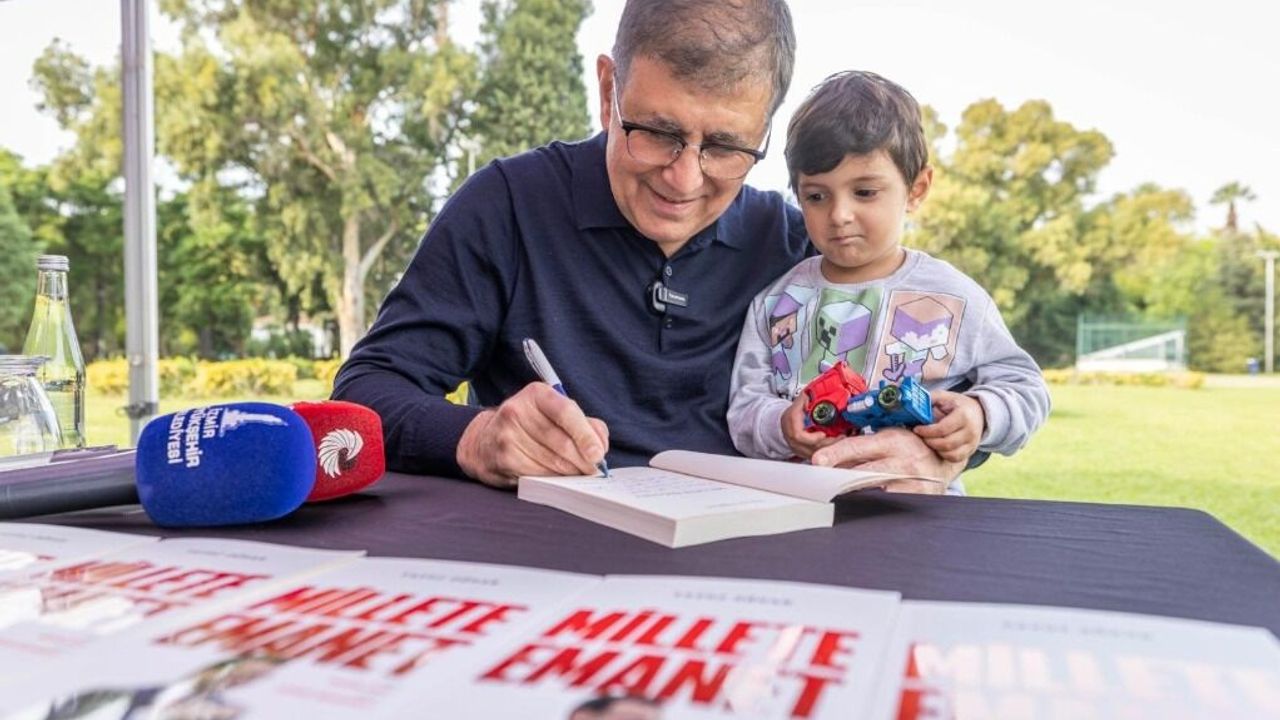 Son Mühür/Merve Turan- İzmir Büyükşehir Belediye Başkanı Dr. Cemil Tugay, Kültürpark’ta kapılarını açan İZKİTAPFEST – 6. İzmir Kitap Fuarı kapsamında, tutuklu İstanbul Büyükşehir Belediye Başkanı Ekrem İmamoğlu’nun hayatını ve siyasi mücadelesini anlatan “Millete Emanet” kitabını İzmirliler için imzaladı. Gazeteci Yavuz Oğhan’ın kaleminden çıkan eserin imza etkinliği, fuarın ikinci gününde, kitapseverlerin ve İmamoğlu destekçilerinin yoğun ilgisiyle karşılandı. Uzun kuyrukların oluştuğu etkinlik yaklaşık iki saat sürdü ve bu süreçte Başkan Tugay, hem İzmirlilerle kucaklaştı hem de kitapları imzalayarak İmamoğlu’na yönelik destek mesajlarını kabul etti.