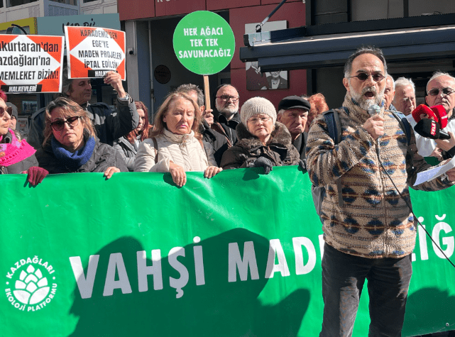 Son Mühür/ Gamze Eskiköy- Ege Çevre ve Kültür Platformu, Kazdağları Ekoloji Platformu, Kaz Dağları’ndaki doğa katliamına karşı İzmir’de bir araya geldi. Türkan Saylan Kültür Merkezi önünde yapılan basın açıklamasında konuşan Egeçep Eşsözcüsü Baha Okar, mahkeme kararlarına rağmen maden faaliyetlerinin devam ettiğine dikkat çekerek, “Bir milyon ağacın kesildiği Kaz Dağları’nda yalnızca doğa değil, hukuk da katledildi” dedi.