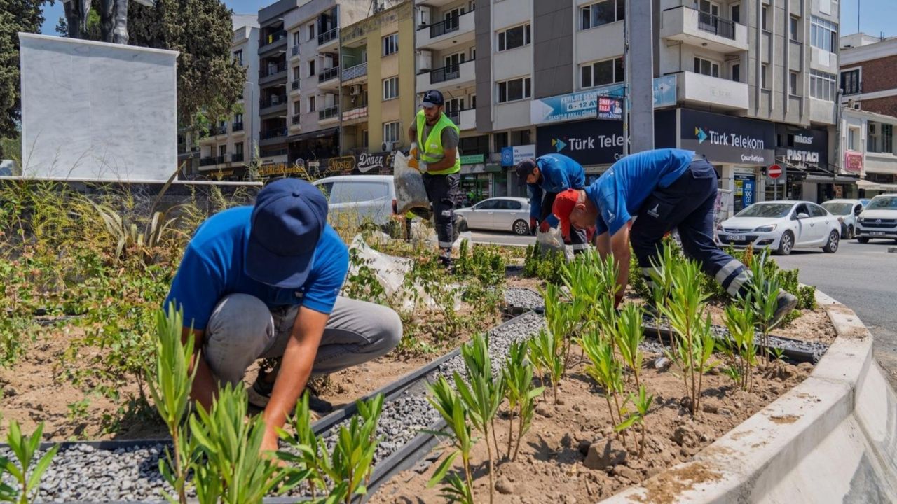 İzmir Büyükşehir Belediye Başkanı Dr. Cemil Tugay’ın kuraklık eylem planı çerçevesinde, Park ve Bahçeler Dairesi Başkanlığı, yeşil alanlarda kullanılan su miktarını azaltmak için çalışmalara hız verdi. Bu yeni yaklaşımla, kent genelindeki kamusal alanların estetik ve çevreci bir şekilde dönüştürülmesi hedefleniyor. Çalışmaların en son örnekleri, Bornova'daki Ege Üniversitesi Kavşağı ile Bayraklı'daki Haydar Aliyev Caddesi ve Manas Bulvarı kesişimindeki kavşaklarda gerçekleştirildi.