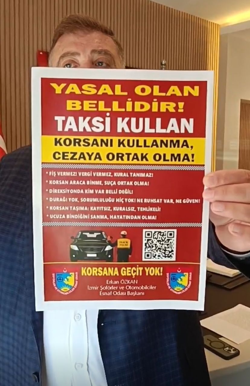 Erkan Özkan, ayrıca Martı TAG uygulamasına karşı başlattıkları bilgilendirme kampanyası hakkında da bilgi verdi. Oda, 26 Eylül’e kadar sürecek yeni bir farkındalık kampanyasını hayata geçiriyor. Taksilere, duraklara ve çeşitli noktalara yapıştırılacak afişlerde “Yasal olan bellidir, taksi kullan. Korsanı kullanma, cezaya ortak olma! Korsana geçit yok” sloganı yer alacak.