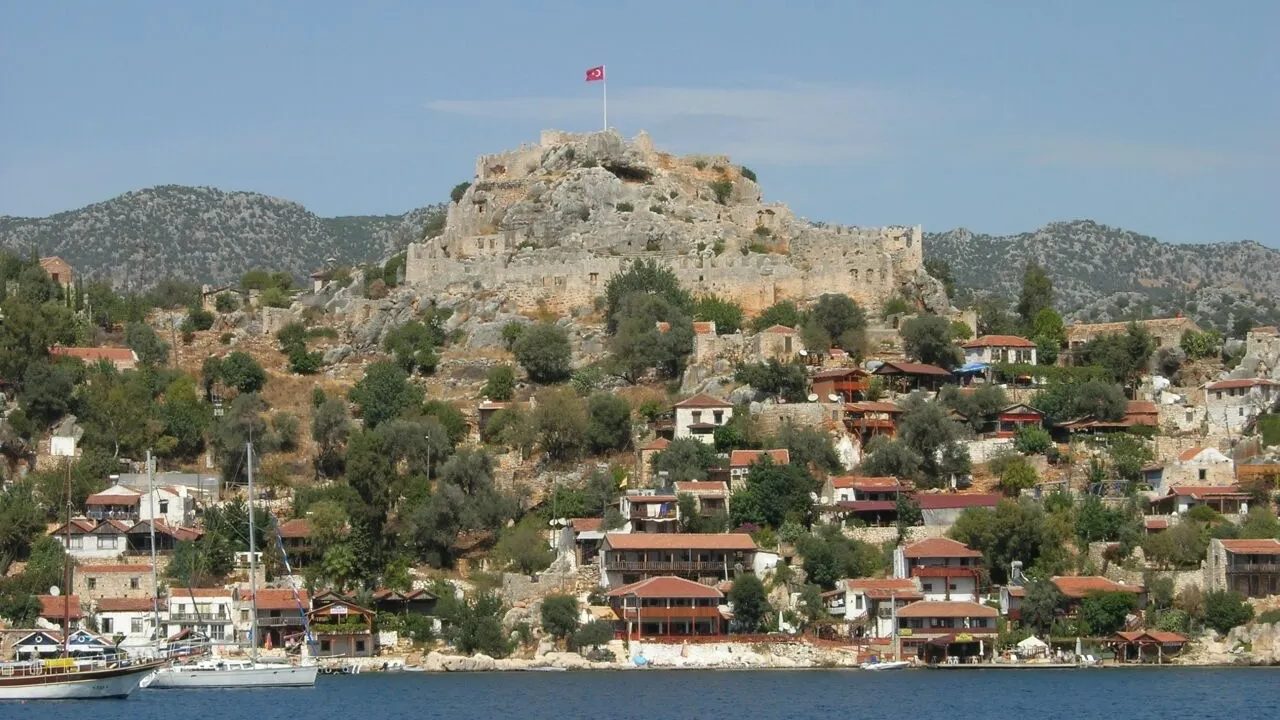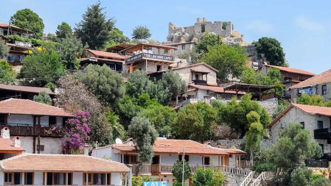 Antik Likya Birliği’nin en küçük şehirlerinden biri olan Simena’nın kalıntıları üzerine kurulu köyde Ortaçağ’dan kalma bir kale bulunuyor. Kale içinde kayaya oyulmuş, yaklaşık 300 kişi kapasiteli antik tiyatro yer alıyor. Antik taş bloklar ile geleneksel taş evlerin iç içe geçtiği sivil mimari dokusu öne çıkıyor. Denizin içinde görülen Likya tipi lahitler ise su seviyesindeki değişimlerin somut kanıtları arasında gösteriliyor.