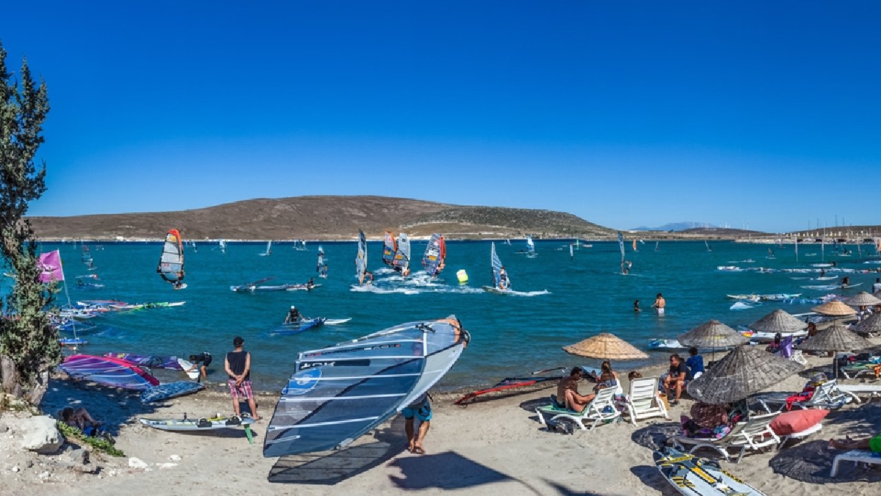 İzmir’in popüler tatil beldesi Alaçatı, yaz mevsiminin kendini hissettirmesiyle birlikte tatilciler için cazibe merkezi haline geldi. Bu bölgedeki Çark Plajı, sıcaklardan bunalanlların tercih ettiği sakin ve doğal güzelliklere sahip plajlardan biri. Yıl boyunca esen rüzgârı sayesinde serinlik sunan Çark Plajı, aynı zamanda rüzgar sörfü yapmak isteyenler için de ideal koşullar sağlıyor.