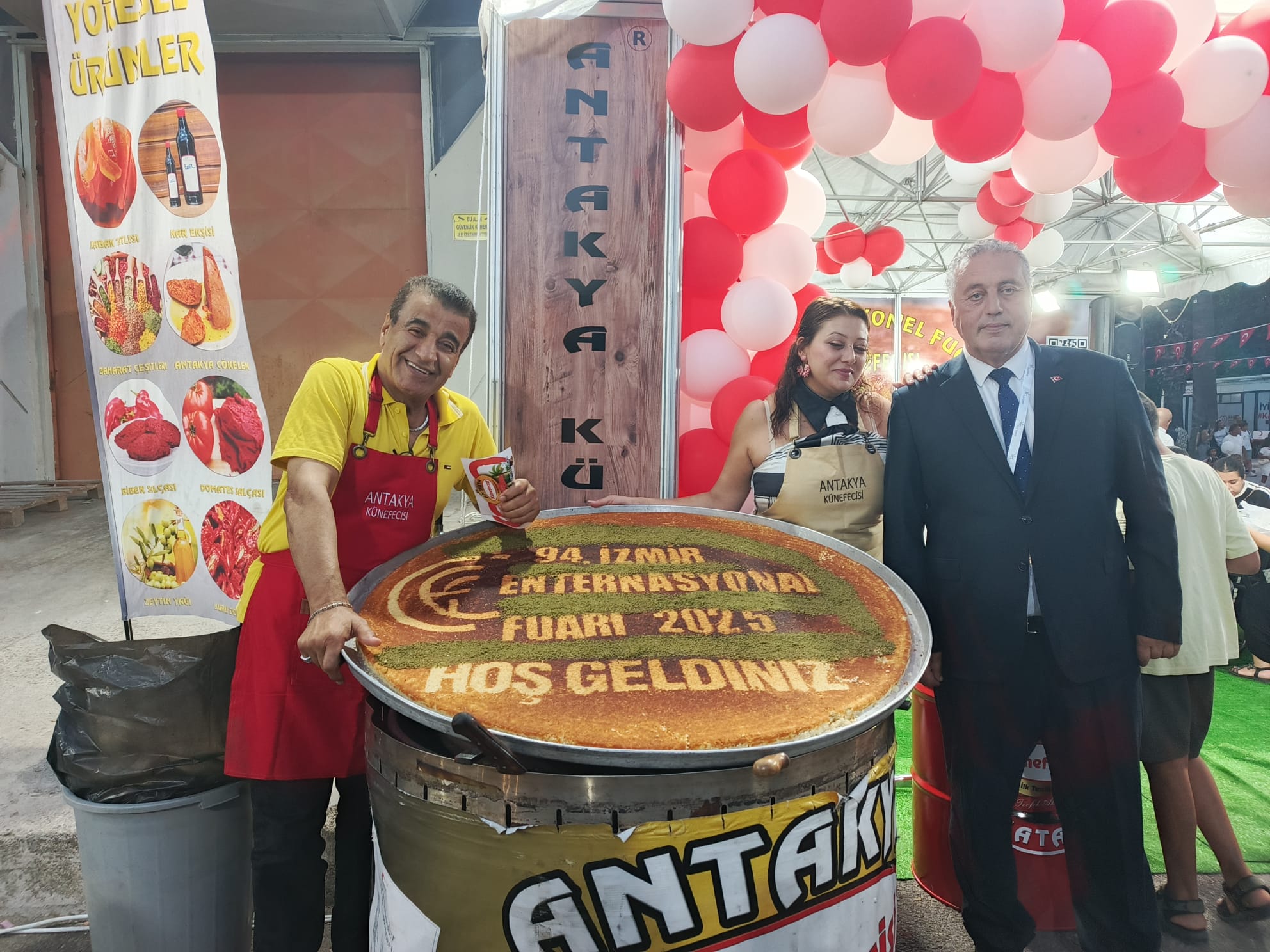 Antakya'nın tescilli künefesinin tadı damaklarda kaldı. Basmane kapısından Fuara gelen ziyaretçiler kaymaklı, dondurmalı yöresel lezzet künefeyi tatmadan geçmiyor. Stantın önünde uzun kuyruklar oluşuyor. Künefe dışında Antakya ürünlerini satın alabiliyorlar. Diğer lezzetleri tadıyorlar.