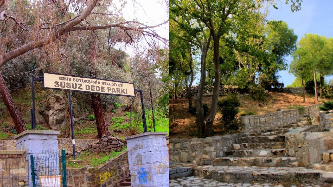 İzmir’in Göztepe semtinde, şehrin karmaşasından birkaç adım uzaklıkta yer alan Susuz Dede Tepesi, manevi atmosferi ve panoramik manzarasıyla dikkat çeken bir ziyaret noktası. Kentin en büyük parklarından biri olan Susuz Dede Parkı’nın zirvesinde yer alan mezar, kimliği tam olarak bilinmeyen “Susuz Dede”ye ait.