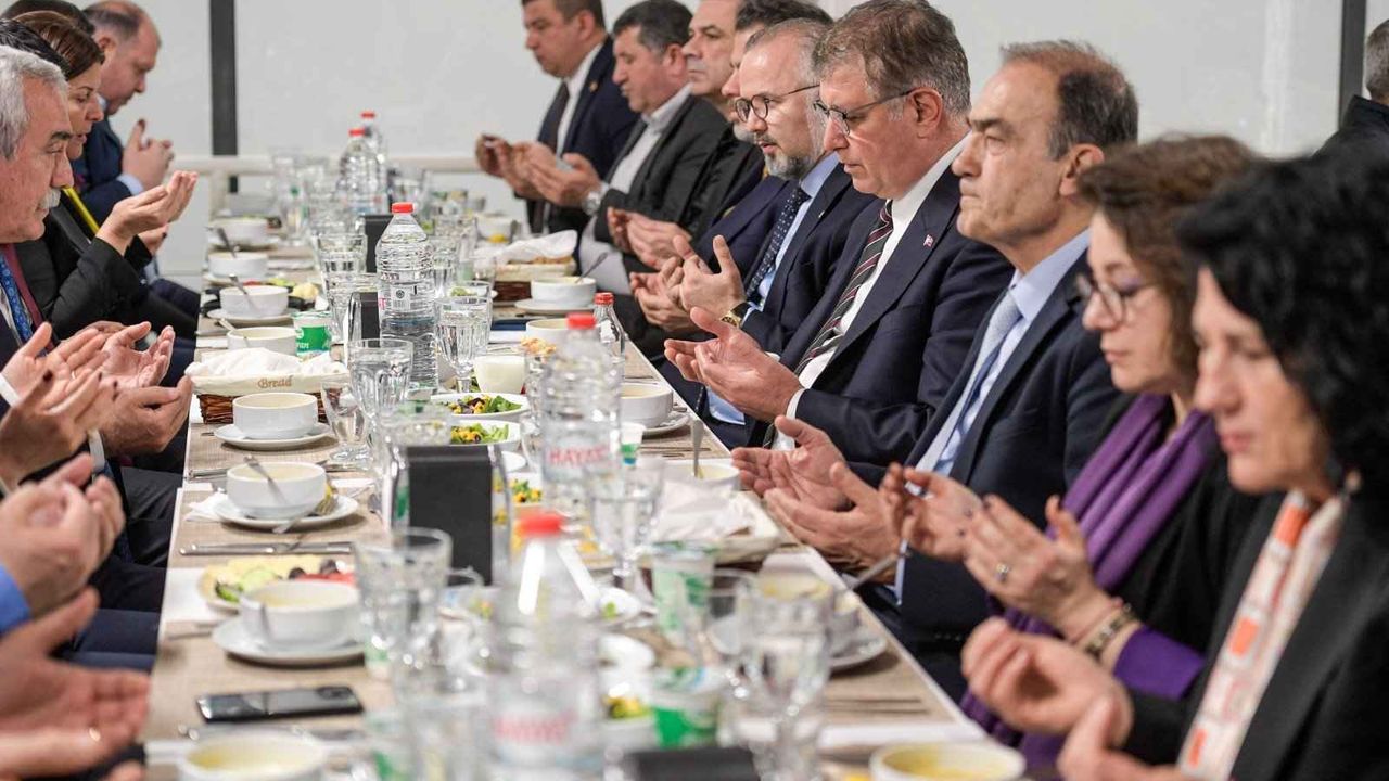İftar yemeğinde konuşma yapan Başkan Cemil Tugay, zaman zaman eleştiriler, anlaşmazlıklar olsa bile İzmir için çalışmaya vurgu yaparak, ''Ramazanınız kutlu olsun, mübarek olsun. İnşallah hayırlara vesile olsun. Hepimizin şehrimizin iyiliği üzerine, insanlarımızın iyiliği üzerine duaları olduğuna eminim. Hayır dualarınızın kabul olmasını diliyorum. Güzel İzmir’imize iyilikler gelmesini yürekten diliyoruz. Beraber çalışıyoruz. Zaman zaman birbirimizi eleştiriyoruz.