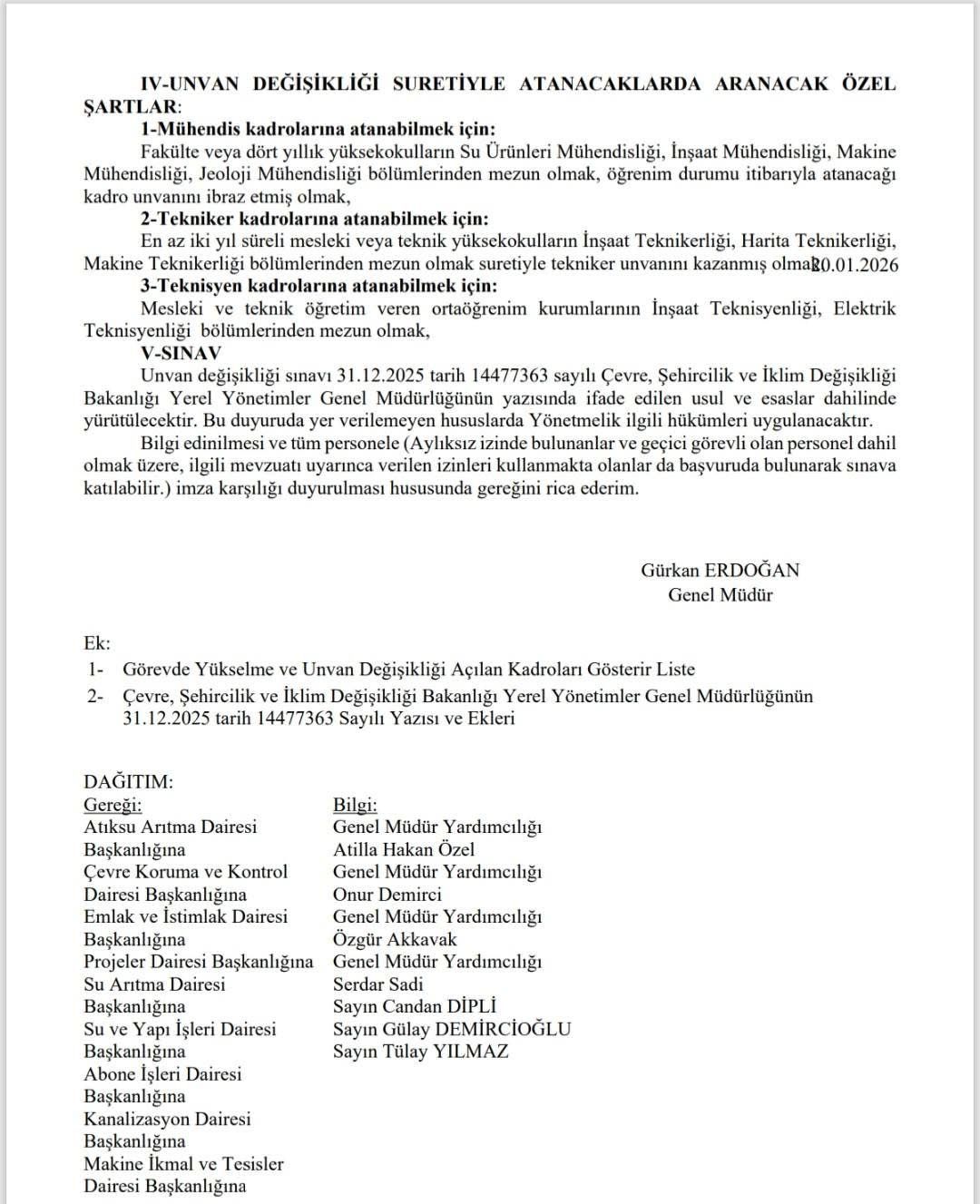 Sendikaya iletilen bilgilere göre, açılması planlanan sınavlarda Görevde Yükselme kapsamında 6 şef, Unvan Değişikliği kapsamında ise 5 mühendis, 3 tekniker ve 2 teknisyen kadrosu için sınav yapılacak.