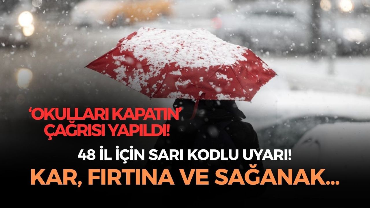 İstanbul ve çevresinde beklenen kar yağışı öne çıksa da, ülke genelinde fırtına, çığ tehlikesi ve gök gürültülü sağanak ihtimali nedeniyle 48 il için “sarı” kodlu uyarı yapıldı. Söz konusu illerde yaşayan vatandaşların tedbirli olması istenirken, Meteoroloji Genel Müdürlüğü’nün resmi internet sitesinde uyarı kapsamındaki iller şu şekilde sıralandı: