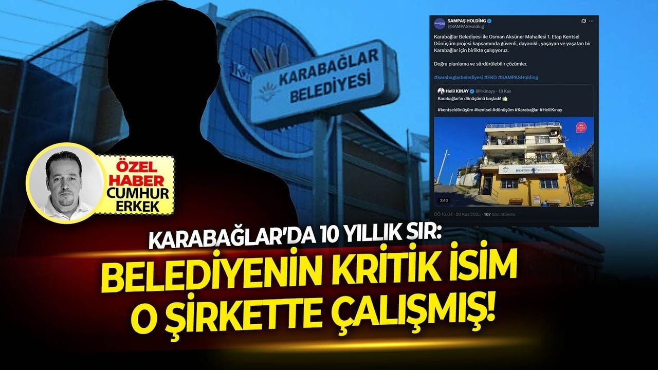 Karabağlar belediyesinde görev yapan kritik isim, 2024 yılında üst düzeyde göreve getirildi. 10 yıl boyunca çalıştığı Sampaş holding'in bir yıl sonra kentsel dönüşüm projesine talip olması çok tartışıldı. Karabağlar kentsel dönüşüm projeleri, teknik verilere göre mi yoksa "eski iş arkadaşlıkları" üzerinden mi şekilleniyor? soruları yanıt bekliyor.