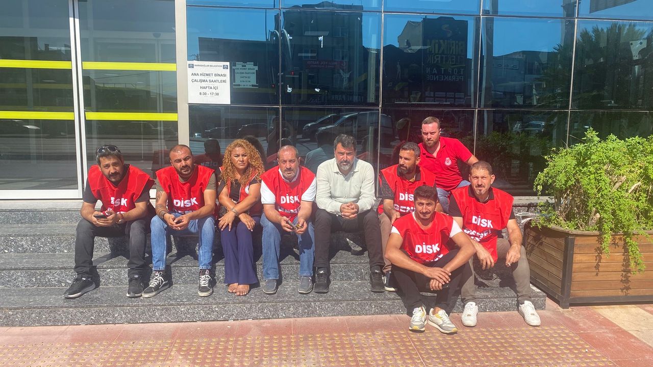 Son Mühür/Gamze Eskiköy- Karabağlar Belediyesi’nin iştiraklerinden Karbel A.Ş.’de çalışan işçiler, aylardır ödenmeyen sosyal hakları ve geriye dönük alacakları için bir kez daha belediye binası önünde toplandı. DİSK Genel-İş 5 No’lu Şube’nin açıklamasına göre, işçilerin 5 adet gıda çeki ile 5 aydır bekleyen Toplu İş Sözleşmesi farkları hala ödenmedi.