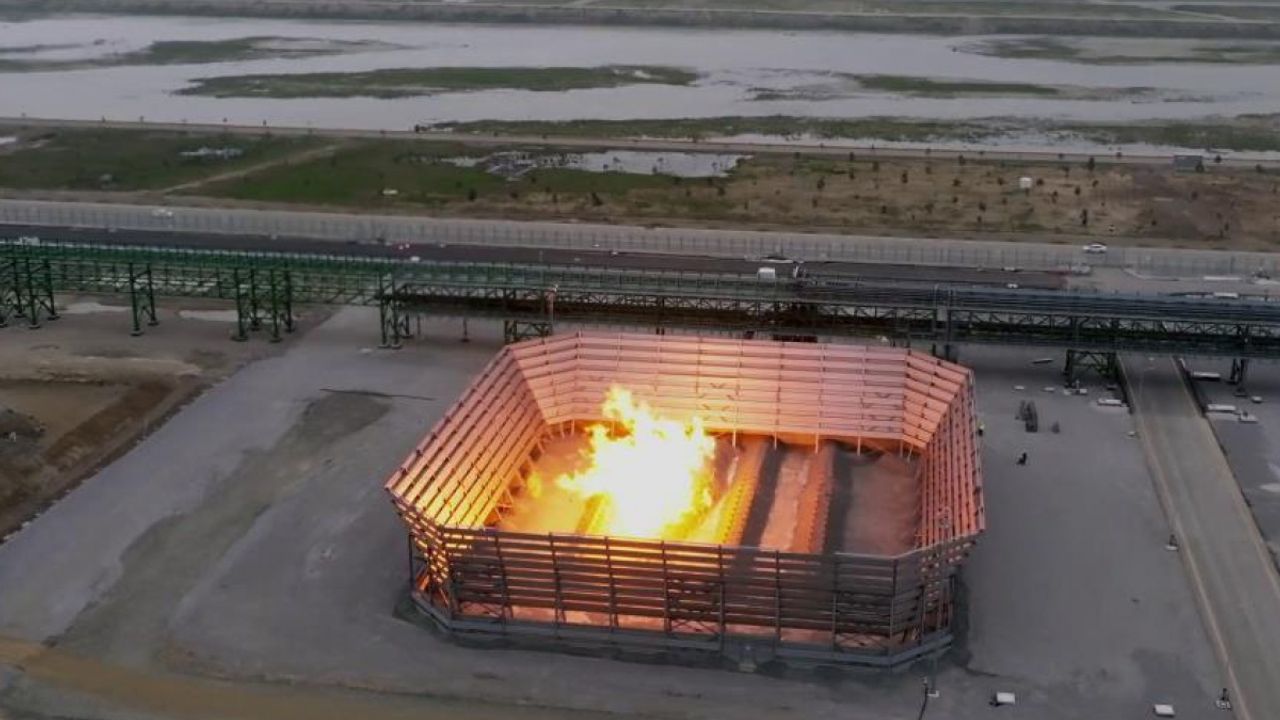 Karaya ulaşan gazın test odasındaki yanma görüntüleri de dron ile havadan görüntülendi.