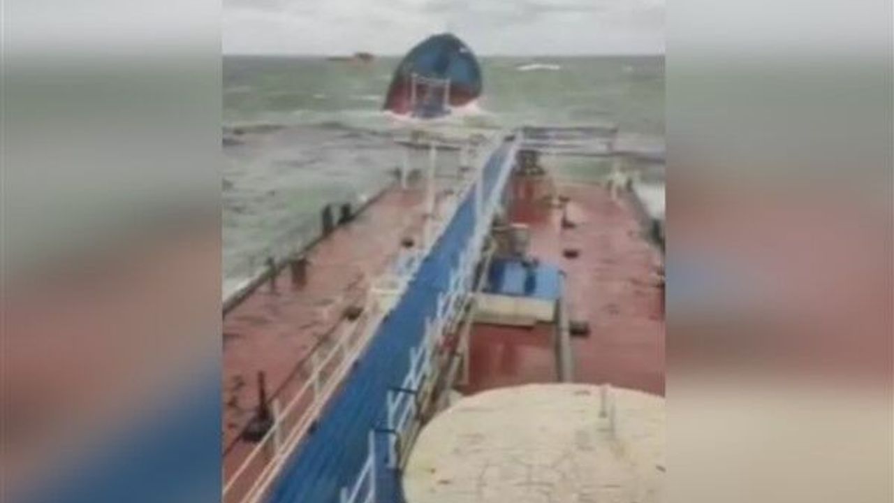 Sosyal medyada paylaşılan görüntülerde, büyük bir kargo gemisinin ikiye ayrıldığı, dalgalar arasında üst güvertesinden su aktığı görüldü. Görüntülerde, geminin pruvasının kopmuş olduğu ve mürettebatın can yelekleriyle hazır beklediği kaydedildi.