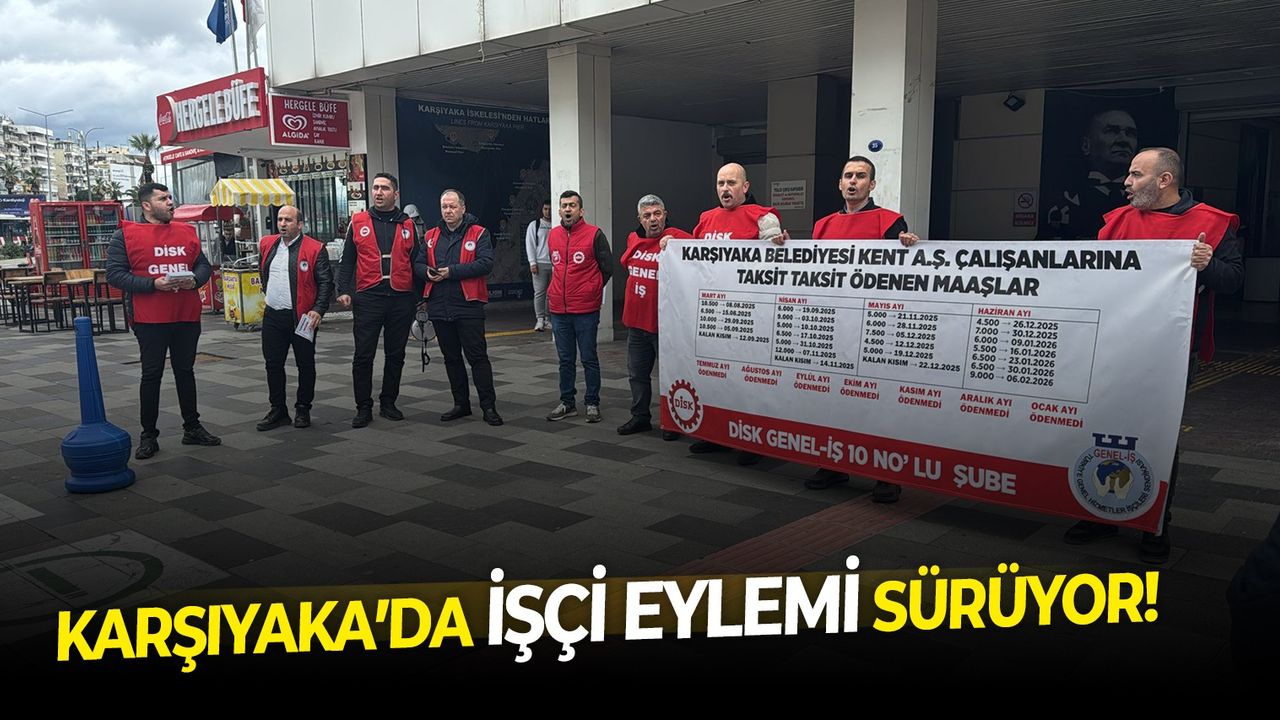 Karşıyaka’da işçi maaşı krizi gün geçtikçe tırmanırken, alacakları ödenmeyen Kent A.Ş. çalışanları şirket önündeki eylemlerini sürdürüyor. Karşıyaka Belediyesi’nin kronik bir sorunu haline dönüşen işçi alacakları konusu gündemden bir türlü düşmüyor. Son Mühür’e konuşan DİSK Genel İş İzmir 10 No’lu Şube Başkanı Ferit Akdoğan, “Alacaklarımız için maaşlarımız için toplu iş sözleşmesi farklarımız için çalışan 540 arkadaşımız için hak arayışımızı kent aş şirketi önünde sürdürüyoruz” dedi. Kent A.Ş. çalışanları yaşadıkları mağduriyet ilgili hazırlanan broşür ve taşıdıkları pankartlarda, ilçe halkına seslendi. “Karşıyaka Belediyesi Kent.A.Ş. işçisi ne yaşıyor, biliyor musunuz?” yazılı broşürde, Biz Kent A.Ş. işçileri olarak 5 yıldır tam maaş alamıyoruz. Temmuz, Ağustos, Eylül, Ekim, Kasım, Aralık, Ocak, Şubat (7 aylık) maaşlarımız hâlâ ödenmedi. 2 yıl önceki TİS farklarımız ödenmedi. Haftalık 5-6 Bin TL harçlık yatırılarak, biz emekçilerin hayatta kalması bekleniyor”