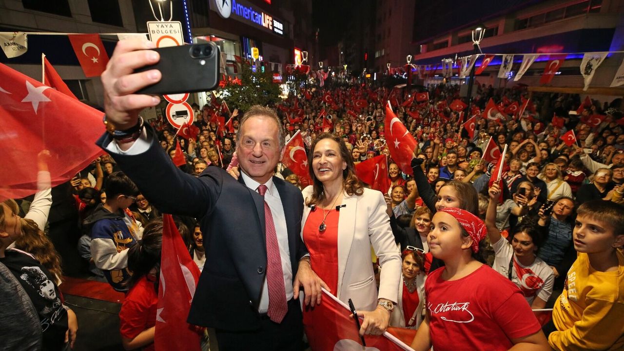 Konvoyun ardından coşku, kortej yürüyüşü ile devam edecek. Belediye binası önünde toplanacak vatandaşlar, saat 19.30’da ellerinde bayraklar, dillerinde marşlarla Çarşı içinden geçerek Atatürk, Annesi ve Kadın Hakları Anıtı’na yürüyecek.
