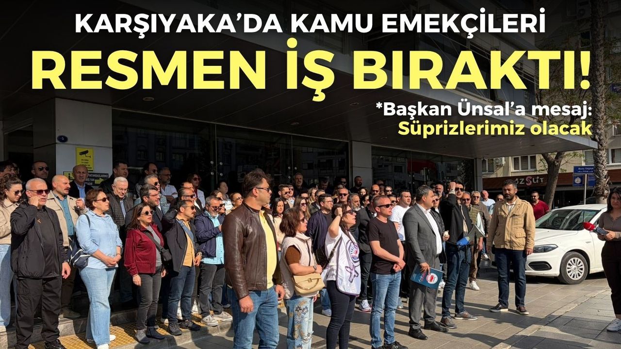 Son Mühür / Yağmur Daştan - Toplu iş sözleşmesi süreci askıya alınan Karşıyaka Belediyesi kamu emekçileri, günlerdir süren uyarı eylemlerinin ardından bugün resmen iş bıraktı. Sözleşmeyle edindikleri sosyal denge tazminatları olan aylık 30 bin TL’lik haklarının tek kalemde kesildiğini söyleyen memurlar, belediye önünde basın açıklaması düzenledi.