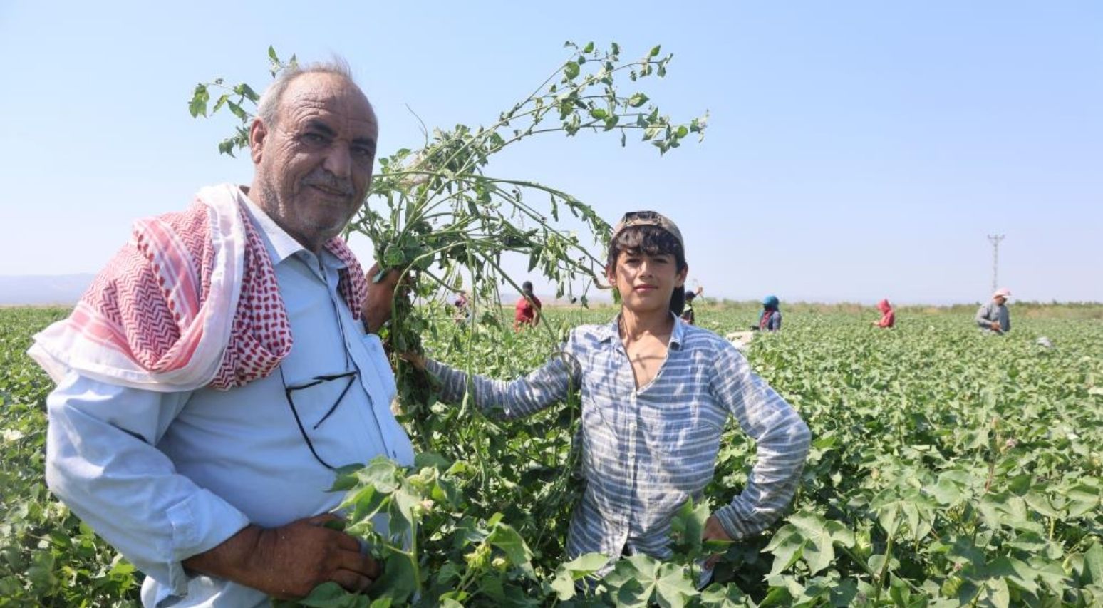 “Burası pamuk tarlası ve yabani otları çekiyoruz. Pamuğun daha rahat etmesi ve beslenmesi için otları çekiyoruz. Hava çok sıcak ama ekmek parası için çalışıyoruz. Serinlemek için burada hiçbir şey yapamıyoruz, sadece soğuk su içiyoruz. Ben sekiz yıldır bu işi yapıyorum. Okula gidiyorum, büyüyünce futbolcu olmak istiyorum.”