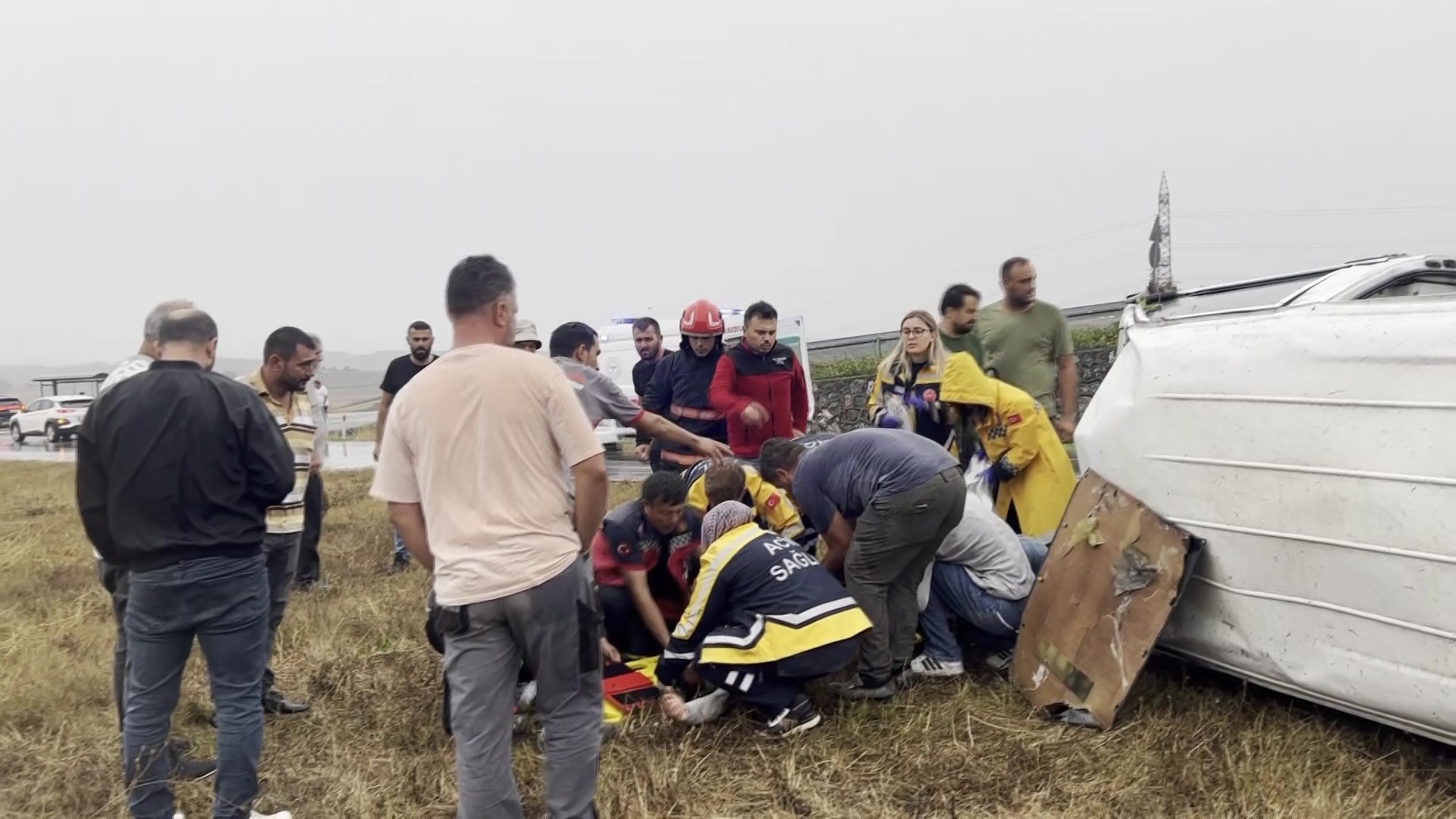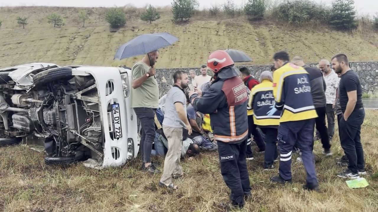 Edinilen bilgilere göre, 54 DY 722 plakalı doğalgaz firmasına ait minibüs, kavşaktan dönüş yaptığı sırada yağmurun etkisiyle kayganlaşan yolda sürücüsünün kontrolünden çıktı. Minibüs, orta refüje çarparak yan yattı. Kazada minibüs sürücüsü M.C. ile araçta bulunan yolcular A.H., M.Ş.Y. ve M.Y.B. yaralandı.
