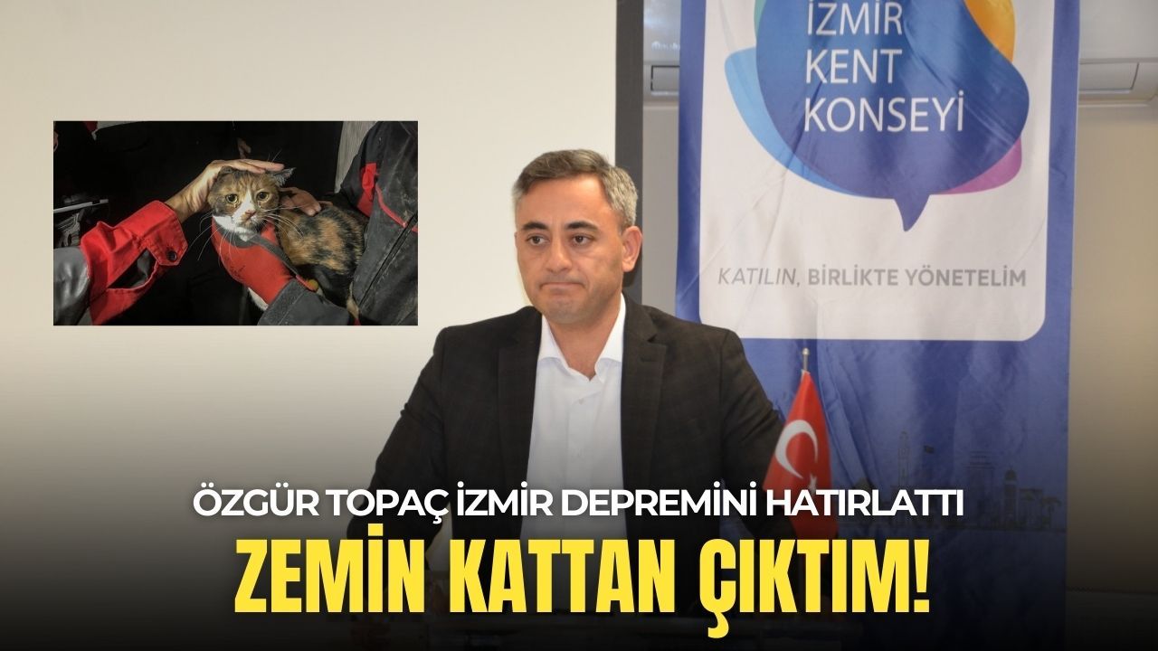 Son Mühür- Berivan Kaya / İzmir Kent Konseyi Başkan Adayı Özgür Topaç, İzmir Kent Konseyi ve İZ-AFED'in 6 Şubat depremlerine ilişkin anma ve farkındalık etkinliğinde yaptığı konuşmasında, "İzmir depreminden sonra içinizde gözü yaşlı kediyi hatırlayan var mı? O kedi benim kedimdi. Ben de depremzedeyim, evimi kaybettim. Bazen damdan düşeni anlamak için damdan düşmeye gerek yok diyorlar ancak bazen gerekiyor. Bugün depremzedelerimizi anıyoruz ancak empati yapmak kolay değil, ta ki yaşayana kadar. Yılmaz Erbek apartmanında ikinci katta oturuyorken depremden sonra zemin katından çıkan kişiyim" dedi.