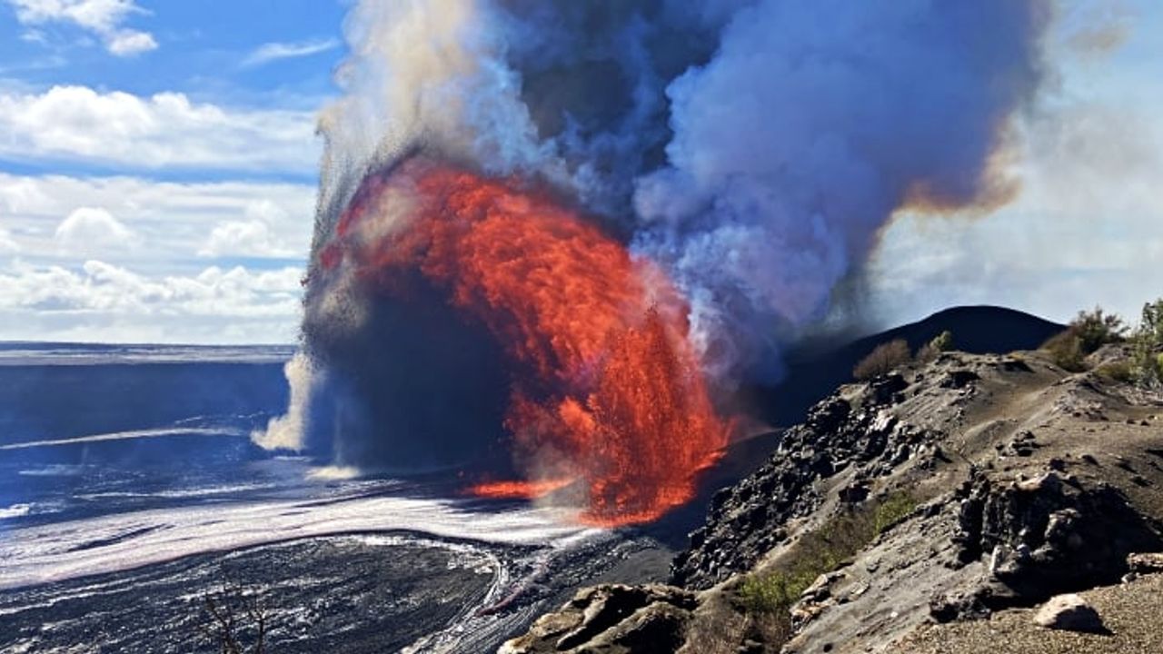 Halemaʻumaʻu kraterinden yükselen lav fıskiyelerinin metrelerce havaya ulaştığı ve bölgede yoğun bir duman tabakası oluştuğu gözlemlendi.