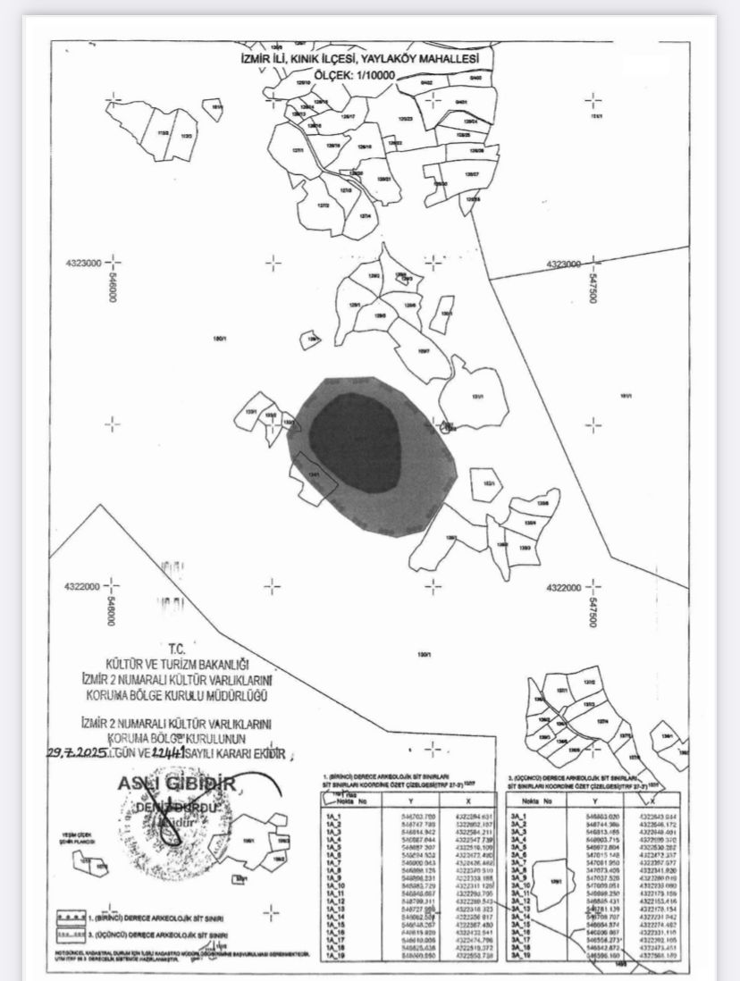 Son Mühür - Kültür ve Turizm Bakanlığı, İzmir’in Kınık ilçesine bağlı Yaylaköy Mahallesi’nde yer alan Kale Tepe bölgesinin, 1. ve 3. derece arkeolojik sit alanı olarak tescil edilmesine karar verdi. Söz konusu karar, Resmî Gazete’de yayımlanarak yürürlüğe girdi.
