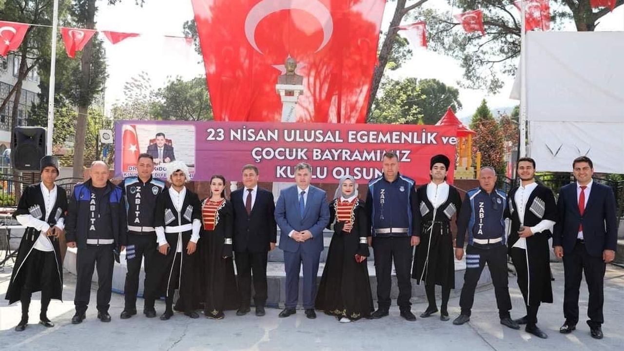 23 Nisan Ulusal Egemenlik ve Çocuk Bayramı dolayısıyla Hükümet Konağı önündeki Atatürk Anıtı'na İlçe Milli Eğitim Müdürü Ömer Derelioğlu ve öğretmenler tarafından çelenk sunuldu.