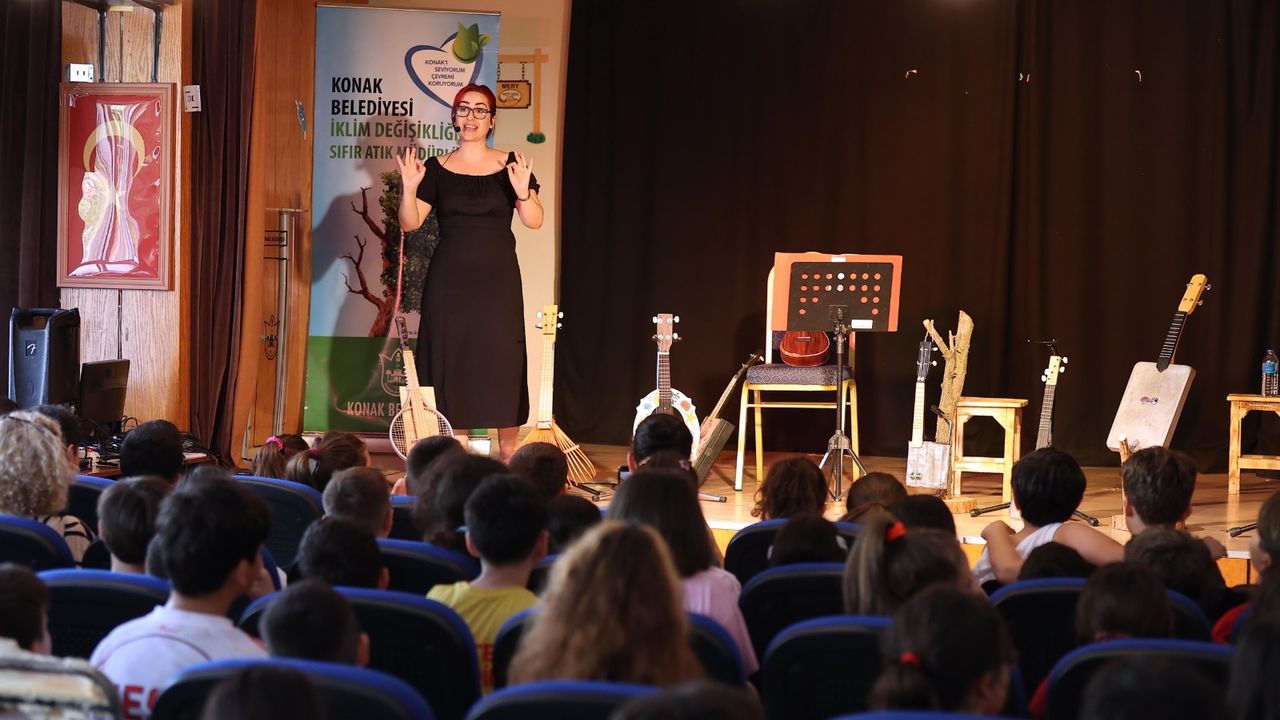 Konak Belediyesi Dünya Çevre Günü ve Haftası etkinlikleri kapsamında çocuklarda farkındalık oluşturmak için “Geri Dönüşüm Müzik Aletlerinin Hikayesi ve Müzik Dinletisi” düzenledi. Mehmet Akif Ersoy İlkokulu’nda gerçekleştirilen etkinlikte dördüncü sınıf öğrencileri, Türkiye ve dünyanın ilk ve tek kadın kanun enstrümanı yapım ustası Burçin Bayar Babaoğlu’yla bir araya geldi. Minik çevreciler, Babaoğlu’nun konservatuara girişinden kanun enstrümanı yapım ustalığına, meslek seçim serüveninden atık malzemelerden müzik aleti üretimine ender rastlanan başarı hikayesini ilgiyle dinledi. Söyleşi sırasında, atık malzemeden ürettiği müzik aletlerinin nasıl yapıldığını anlatan Babaoğlu, kutu, tenis raketi, tırmık gibi farklı ürünleri yeniden tasarlayarak ürettiği enstrümanlarla çocuklar için mini bir konser verdi.