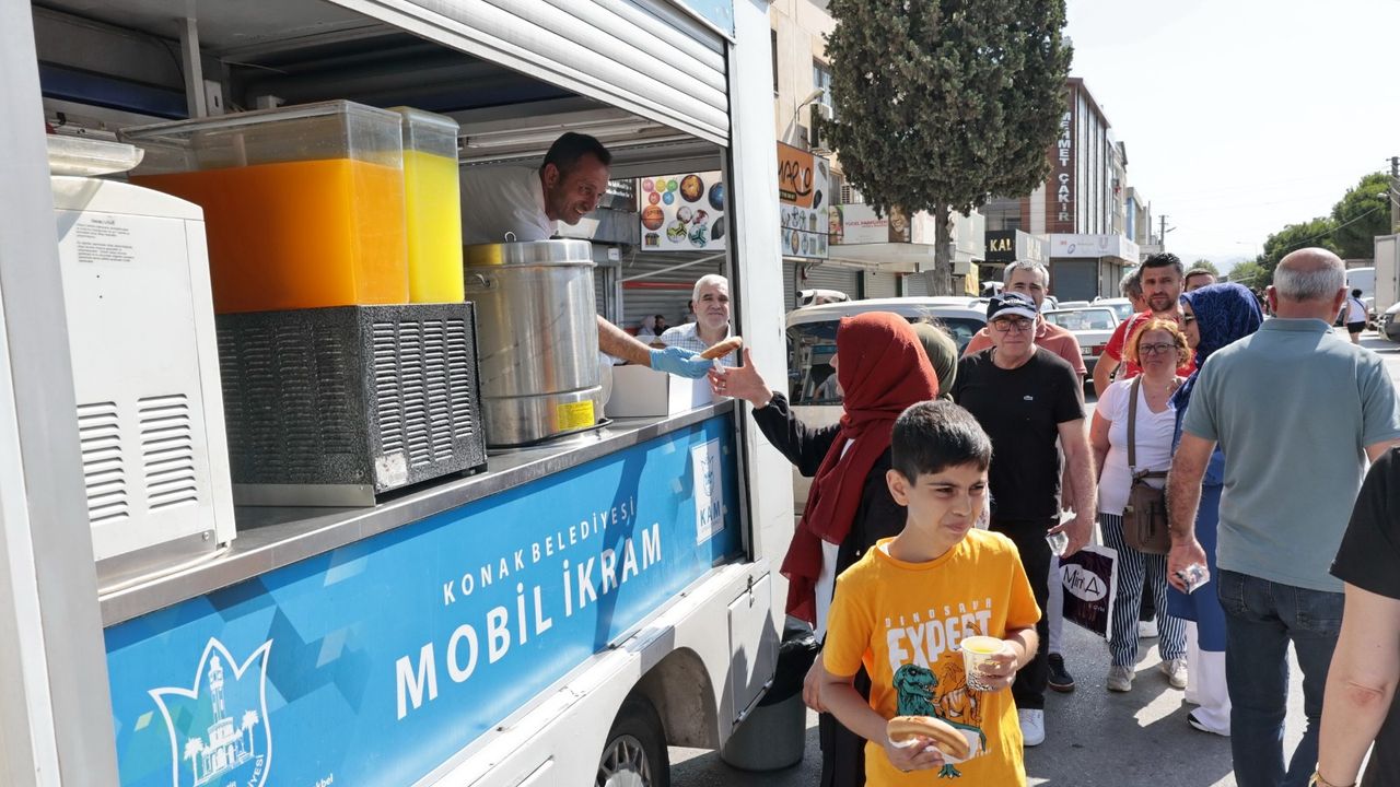 Hayallerindeki üniversitelere ulaşmak için YKS'ye giren gençlerin yanında olan Konak Belediyesi, ilçedeki sınav okullarında öğrencilere ve bekleyen velilere su, çay, limonata, simit ve poğaça ikramında bulundu. Mobil ikram araçlarının etrafına kurulan masa ve sandalyeler sayesinde, veliler çocuklarını daha rahat ve konforlu bir ortamda bekleyebildi.