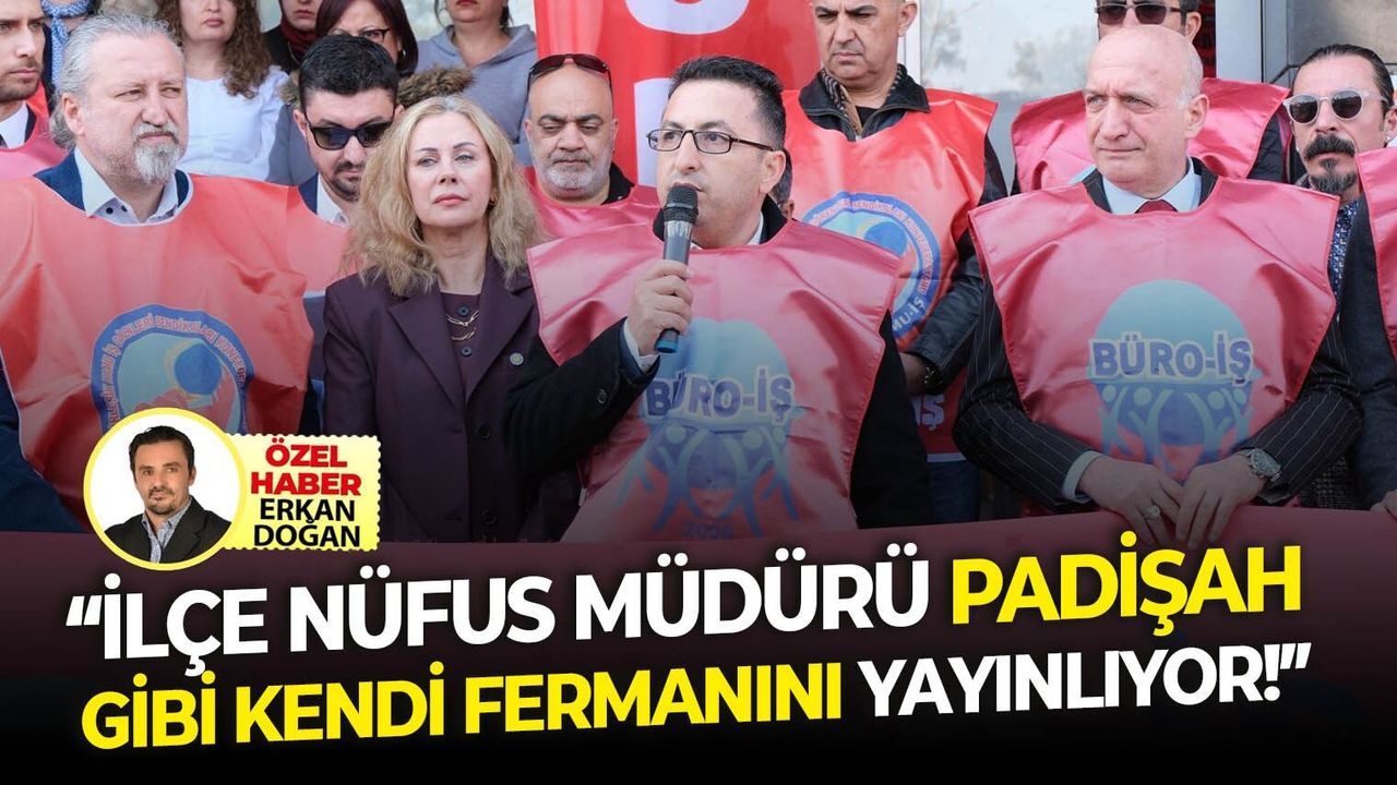 Son Mühür / Erkan Doğan - Büro-İş Genel Başkanı Alay Hamzaçebi, Konak İlçe Nüfus Müdürlüğü’ndeki mobbing iddiaları hakkında düzenlenen açıklamada, “İlçe müdürü padişah gibi kendi fermanını yayınlıyor. Böyle bir haksızlık, mobbing olamaz” dedi.