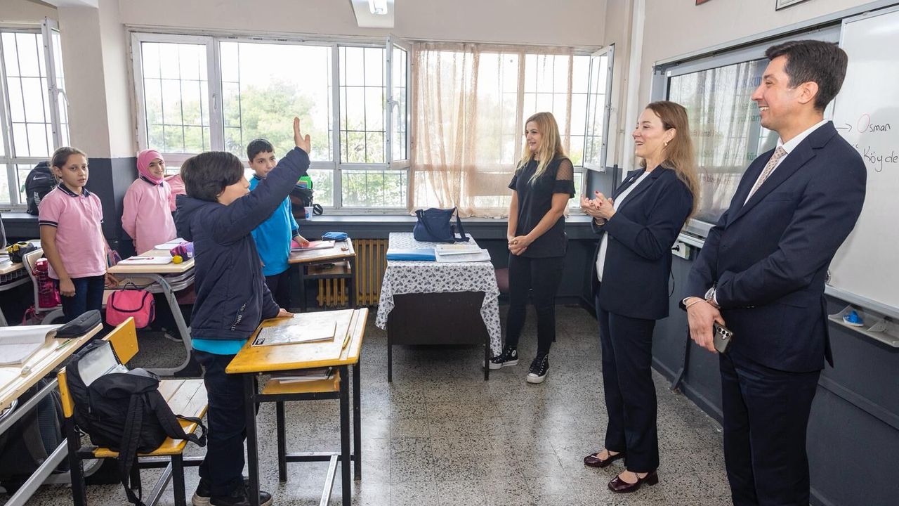 Başkan Mutlu, “Dünyadaki örneklerde olduğu gibi, yerel yönetimlerin okullara desteği çok önemli. Bugün burada çocuklarımızı dinledik, onların ihtiyaçlarını ve hayallerini anlamaya çalıştık. El birliğiyle Konak’taki her çocuğun daha iyi koşullarda eğitim alması için çalışacağız” ifadelerini kullandı.