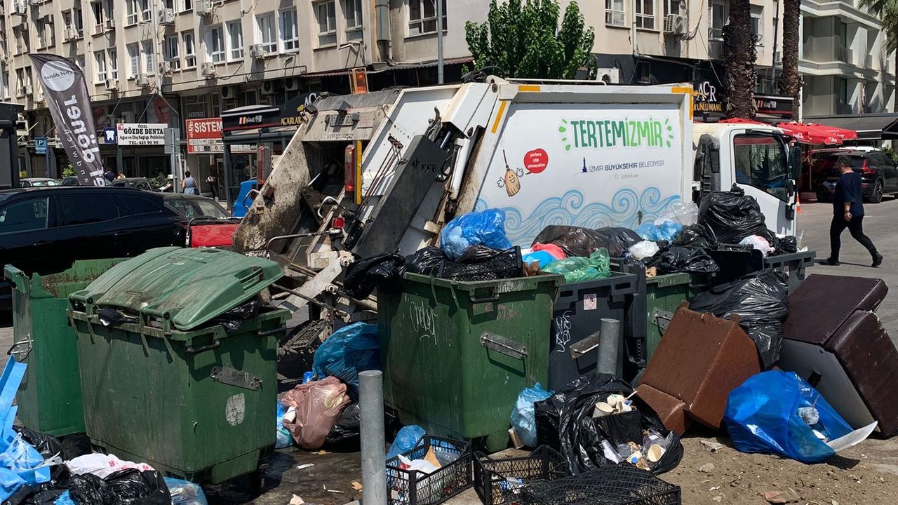 Üzerinde Tertemiz İzmir yazılı Büyükşehir Belediyesi’ne ait çöp kamyonları ilçede çalışmalara başladı. Ancak konteynerlerin etrafını saran çöp yığınları, atık poşetleri ve hacimli çöplerin çokluğu, krizin boyutunu gözler önüne serdi.
