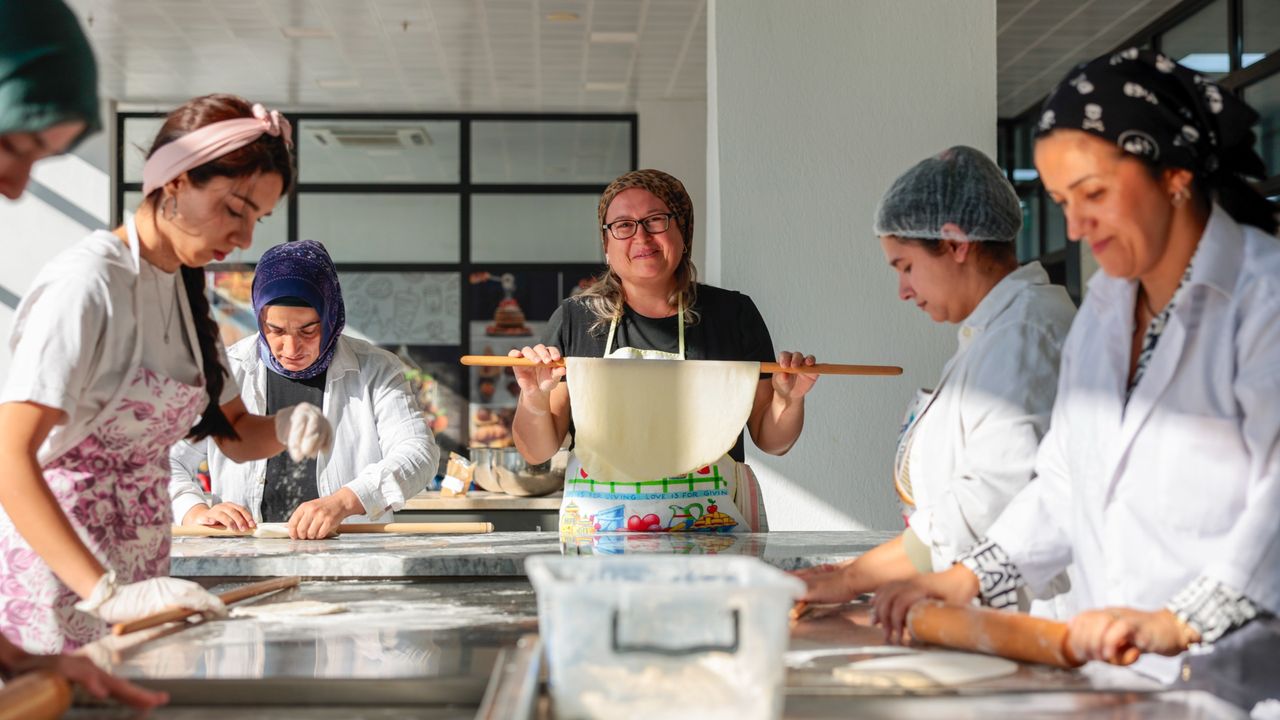 Son Mühür/ Merve Turan- Konak Belediyesi ve İzmir Büyükşehir Belediyesi Meslek Fabrikası iş birliğiyle düzenlenen Geleneksel Hamur Ürünleri Yapımı Kursu ilk mezunlarını verdi. Sertifika töreninde konuşan Başkan Nilüfer Çınarlı Mutlu, “Kadınların üretimin ve iş hayatının içinde olması gerekiyor” dedi.
