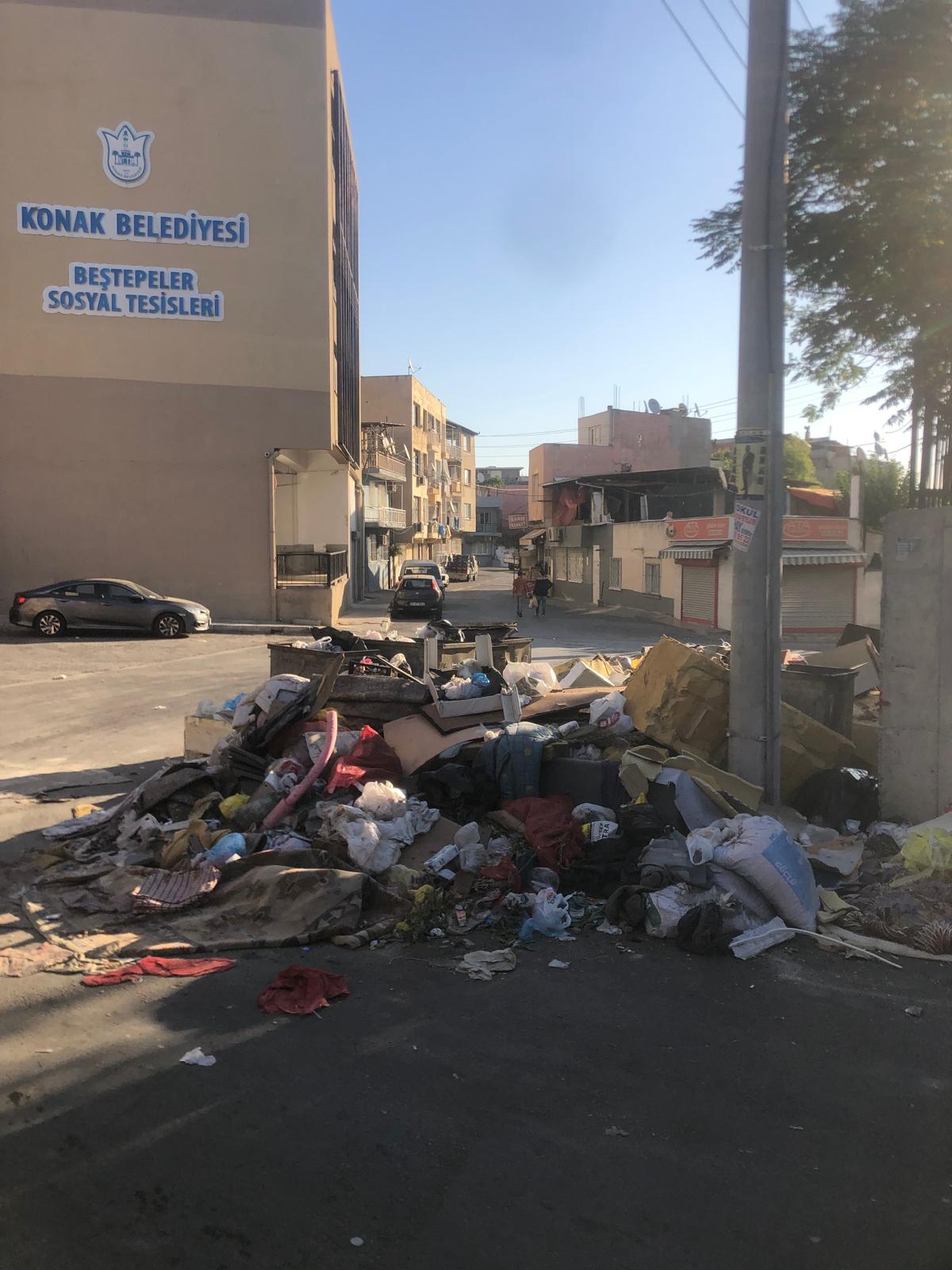 Sadece Beştepe değil, Konak’ın diğer ara sokaklarında da benzer birikimler göze çarpıyor. Çöp konteynerleri taşmış, torbalar ve atıklar sokaklara yayılmış durumda. Özellikle İnönü Caddesi ile Mithatpaşa Caddesi arasında kalan bölge, gün boyunca hem kötü kokular hem de görüntü kirliliği ile karşı karşıya kalıyor.